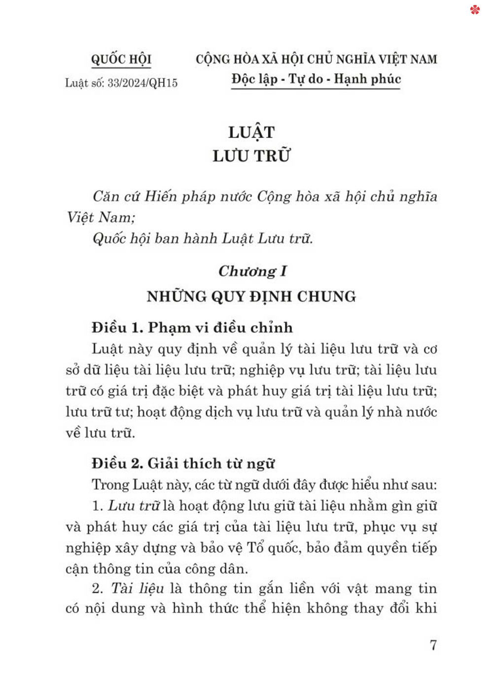 ✨Luật lưu trữ năm 2024 - bản in 2024