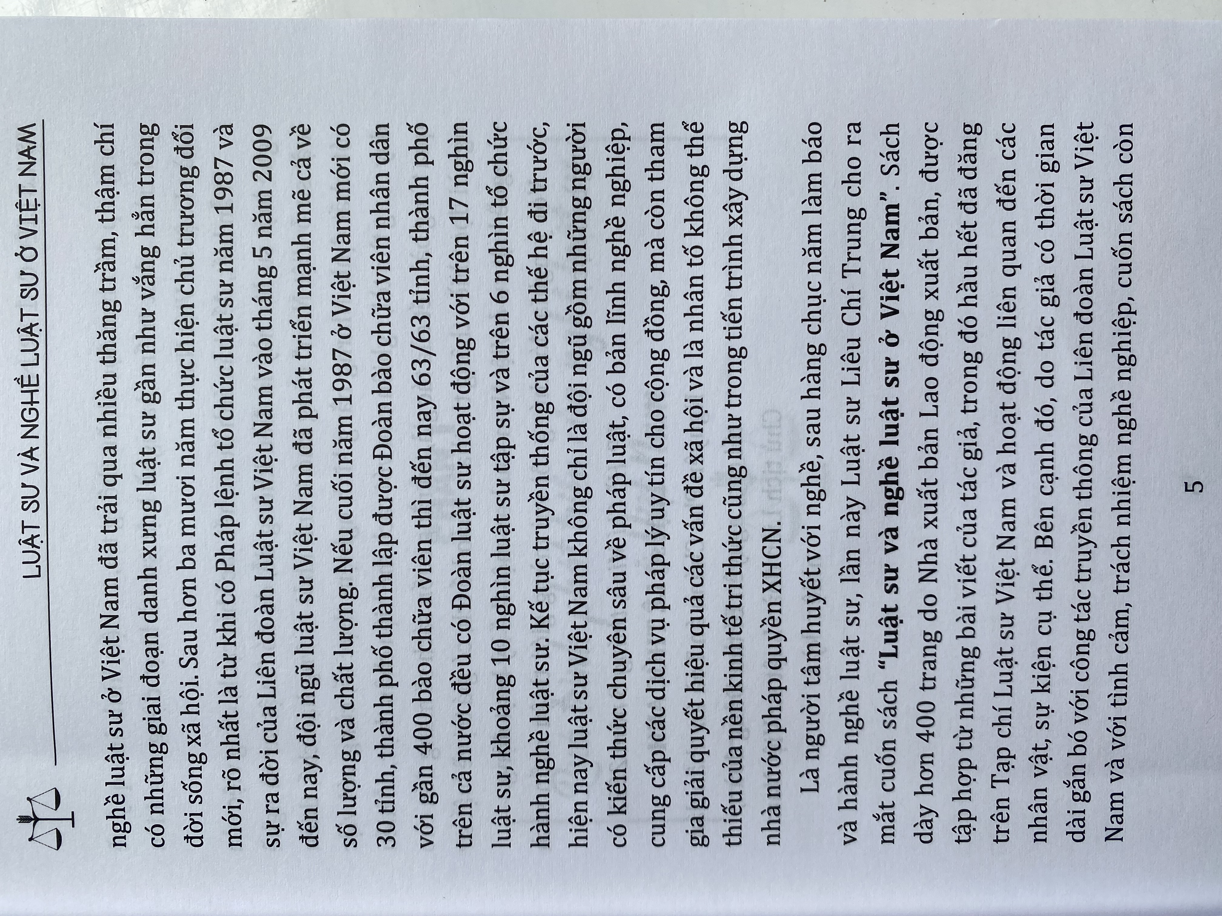 Luật sư là một nghề cao quý. Hoạt động của luật sư cũng được coi là "hàn thử biểu" của nền dân chủ trong xã hội tiến bộ, phát triển. Bởi, luật sư và nghề luật sư xuất hiện như một lẽ tự nhiên do nhu cầu được bảo vệ các quyền, lợi ích hợp pháp của con người, vì mục đích đảm bảo công bằng xã hội và là "sứ giả" đưa pháp luật đến gần hơn với đời sống. Với sứ mệnh bảo vệ công lý, hoạt động của luật sư luôn có ảnh hưởng lớn đối với xã hội, đồng thời đây còn là một trong những lực lượng quan trọng tham gia vào sự nghiệp xây dựng và bảo vệ đất nước.Trong bối cảnh Việt Nam hội nhập sâu rộng với thế giới, luật sư và nghề luật sư ngày càng được quan tâm, coi trọng. Để giúp bạn đọc tìm hiểu thêm về quá trình phát triển của nghề luật sư ở Việt Nam Luatvietbook xin trân trọng giới thiệu cuốn sách " LUẬT SƯ VÀ NGHỀ LUẬT SƯ Ở VIỆT NAM " Tác giả: TS.LS Liêu Chí Trung