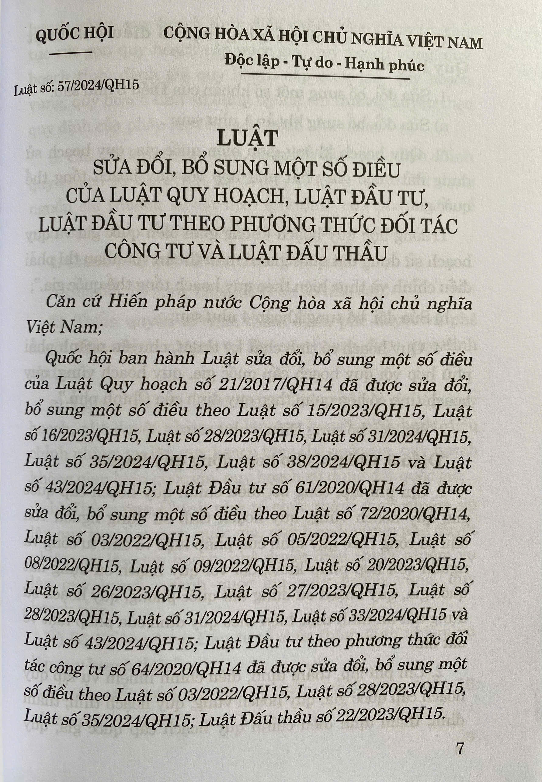 Mua tại TiktokLuật Sửa Đổi, Bổ Sung Một Số Điều Của Luật Quy Hoạch, Luật Đầu Tư, Luật Đầu Tư Theo Phương Thức Đối Tác Công Tư Và Luật Đấu Thầu số 57/2024/QH 15 đã được Quốc Hội khoá XV thông qua ngày 29 tháng 11 năm 2024