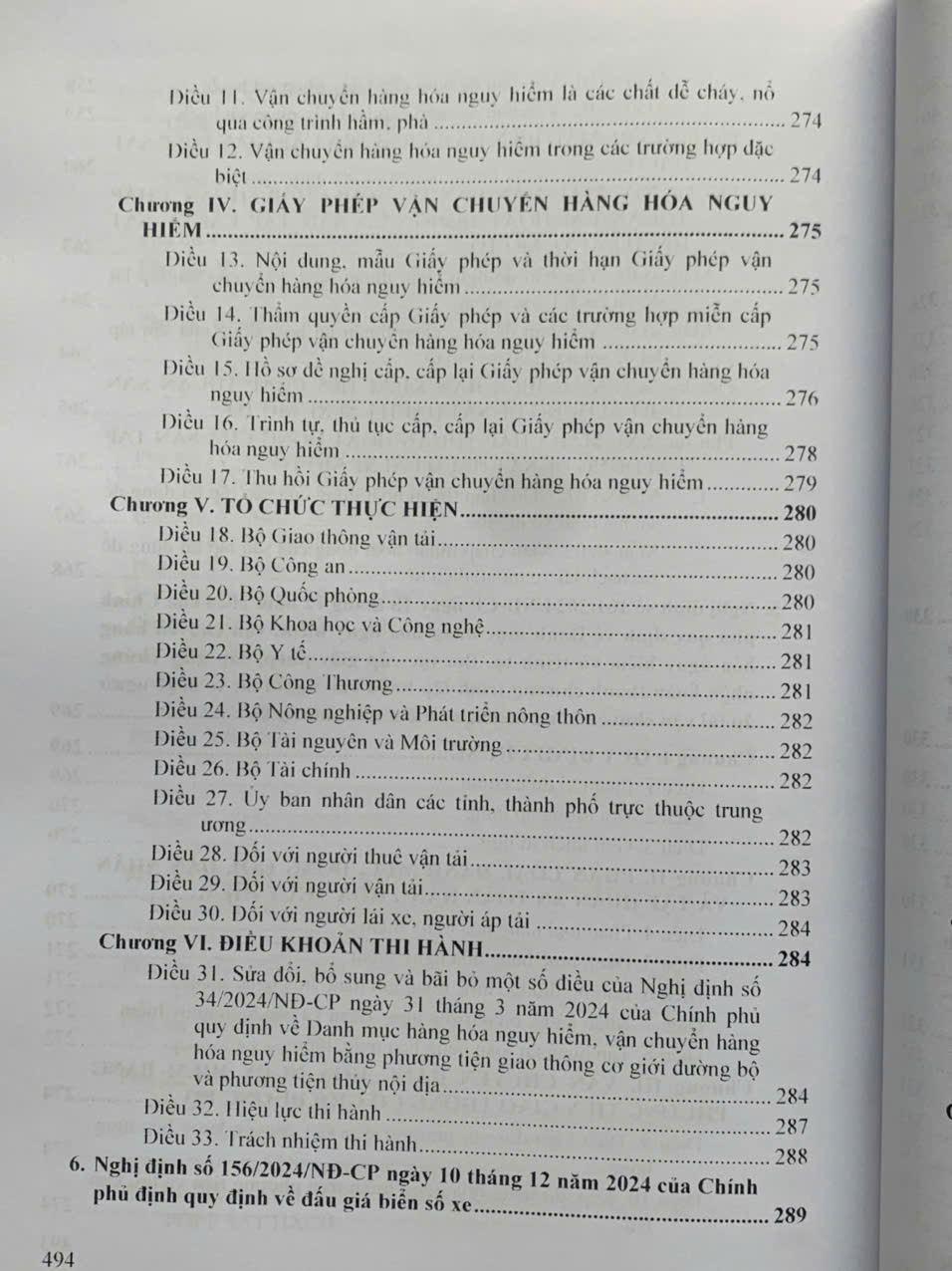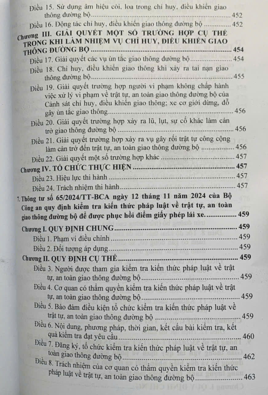 Sách- Luật Trật tự an toàn giao thông đường bộ - Hệ thống văn bản quy định chi tiết thi hành Tác giả: Quốc Hội Nhà xuất bản: Hồng Đức Khổ sách: 19*27cm Phát hành: 2025 Nhà phát hành: Công ty TNHH Sách Luật Việt Nam Giá bìa: 495.000 đ Số trang: 506 trang Hình thức bìa: Bìa mềm Tai nạn giao thông là hiểm họa thường trực đối với mỗi người khi tham gia giao thông trên phạm vi cả nước. Việc nâng cao ý thức chấp hành pháp luật an toàn giao thông để làm thay đổi thái độ, hành vi tự giác chấp hành của người tham gia giao thông luôn được xem là mục tiêu quan trọng trong công tác đảm bảo trật tự an toàn giao thông. Ngày 27 tháng 6 năm 2024, tại kỳ họp thứ 7 Quốc hội khóa XV đã thông qua Luật Trật tự, an toàn giao thông đường bộ. Để sớm đưa luật vào cuốc sống tạo hành lang pháp lý vừa qua Chính phủ các Bộ đã ban hành nhiều văn bản quy định chi tiết thi hành. Nội dung cuốn sách gồm các phần sau: Phần thứ nhất. LUẬT TRẬT TỰ, AN TOÀN GIAO THÔNG ĐƯỜNG BỘ (Được Quốc hội nước Cộng hòa xã hội chủ nghĩa Việt Nam khóa XV, kỳ họp thứ 7 thông qua ngày 27 tháng 6 năm 2024) Phần thứ hai. HỆ THỐNG NGHỊ ĐỊNH QUY ĐỊNH CHI TIẾT THI HÀNH LUẬT TRẬT TỰ, AN TOÀN GIAO THÔNG ĐƯỜNG BỘ Phần thứ ba. HỆ THỐNG THÔNG TƯ HƯỚNG DẪN CHI TIẾT THI HÀNH LUẬT TRẬT TỰ, AN TOÀN GIAO THÔNG ĐƯỜNG BỘ Nghị định số 151/2024/NĐ-CP ngày 15 tháng 11 năm 2024. Nghị định số 168/2024/NĐ-CP ngày 26 tháng 12 năm 2024. Nghị định số 176/2024/NĐ-CP ngày 30 tháng 12 năm 2024. Nghị định số 160/2024/NĐ-CP ngày 18 tháng 12 năm 2024. Nghị định số 161/2024/NĐ-CP ngày 18 tháng 12 năm 2024. Nghị định số 156/2024/NĐ-CP ngày 10 tháng 12 năm 2024. Thông tư số 83/2024/TT-BCA ngày 15 tháng 11 năm 2024. Thông tư số 79/2024/TT-BCA ngày 15 tháng 11 năm 2024. Thông tư số 72/2024/TT-BCA ngày 13 tháng 11 năm 2024. Thông tư số 71/2024/TT-BCA ngày 12 tháng 11 năm 2024. Thông tư số 36/2024/TT-BYT ngày 16 tháng 11 năm 2024. Thông tư số 69/2024/TT-BCA ngày 12 tháng 11 năm 2024. Thông tư số 65/2024/TT-BCA ngày 12 tháng 11 năm 2024. Thông tư số 38/2024/TT-BGTVT ngày 15 tháng 11 năm 2024. Thông tư số 53/2024/TT-BGTVT ngày 15 tháng 11 năm 2024.