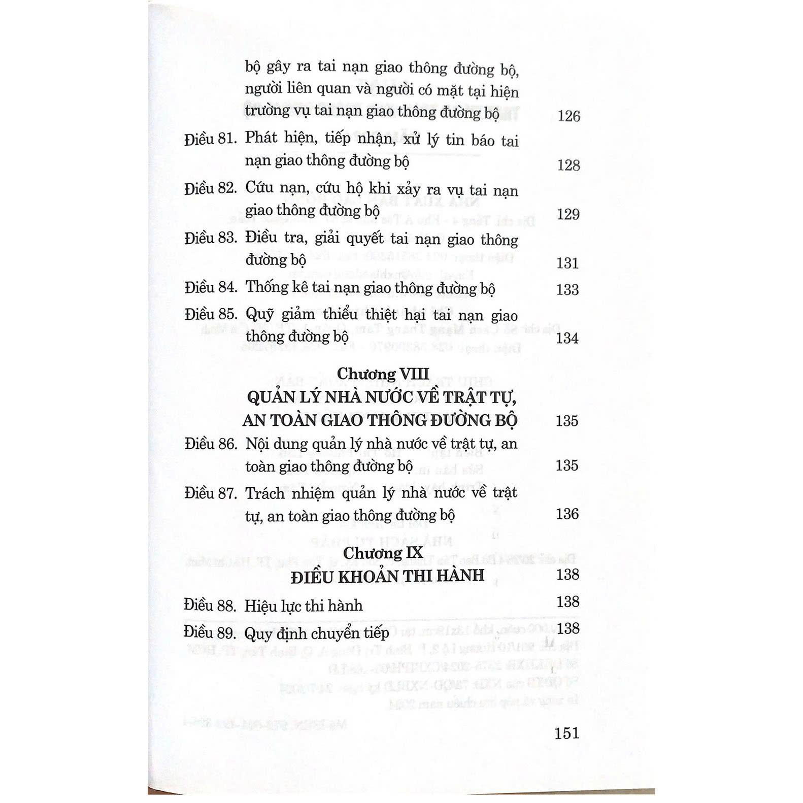 - Số trang: 152 trang Giới thiệu: Luật Trật tự, an toàn giao thông đường bộ Đã được Quốc hội nước Cộng hòa xã hội chủ nghĩa Việt Nam khóa XV, kỳ họp thứ 7 thông qua ngày 27 tháng 6 năm 2024./.