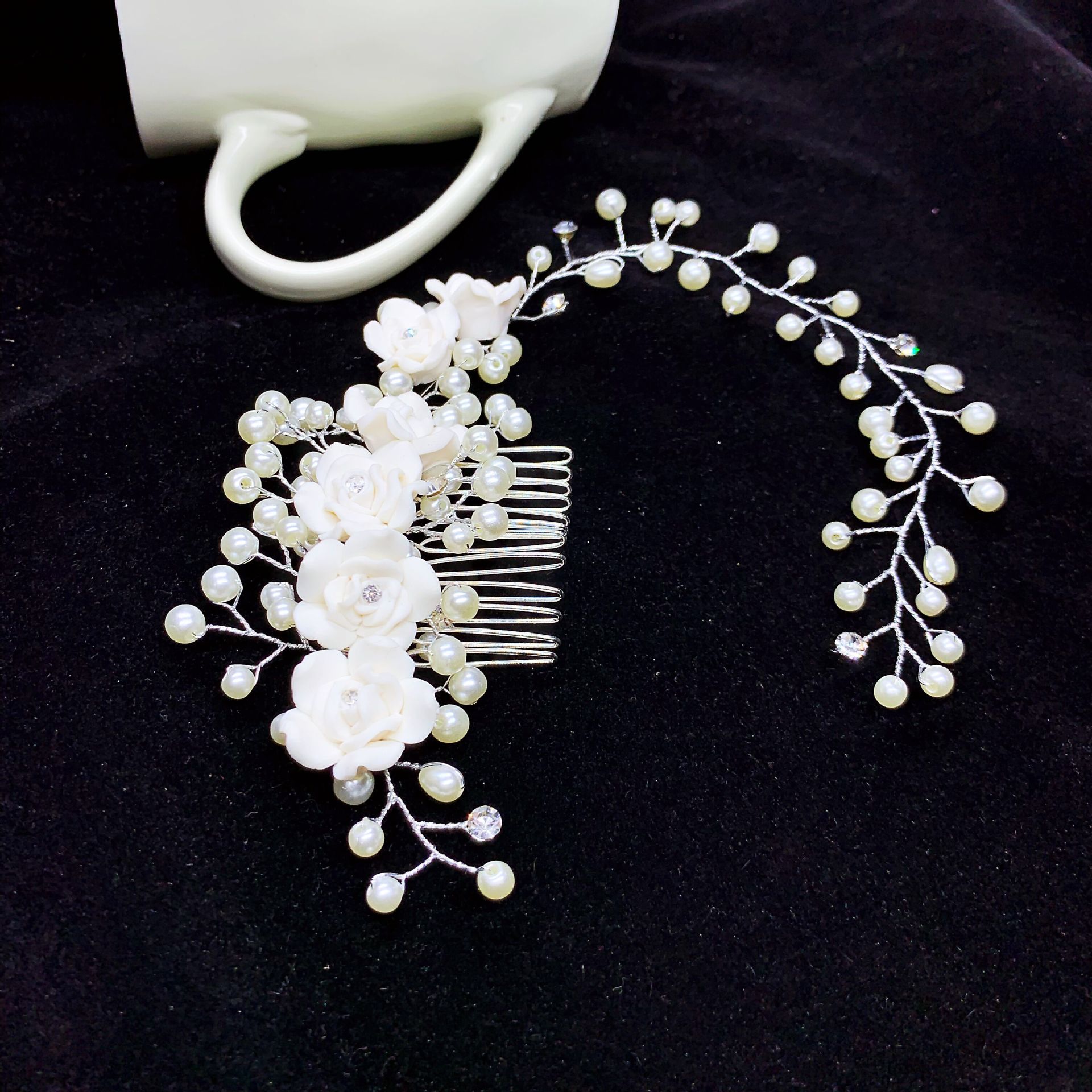 ✨Lược cài tóc hoa trắng trang điểm cô dâu, dạ tiệc