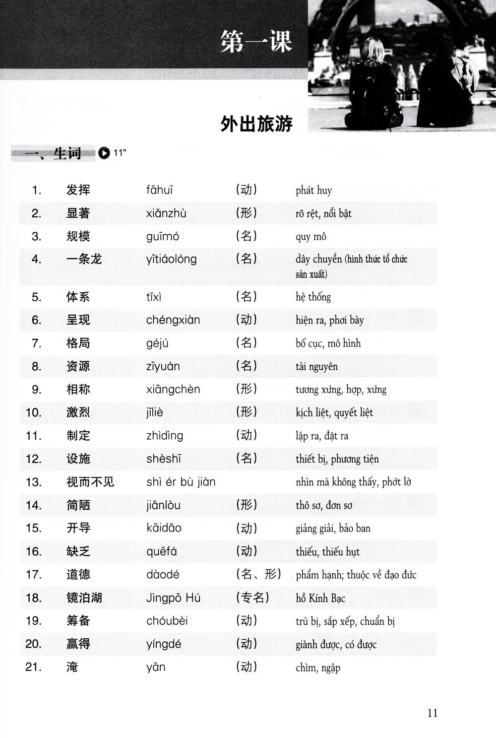 Cuốn sách này thích hợp cho người học đã có khả năng nghe nói trung cấp, nắm được các nội dung ngữ pháp cơ bản trong tiếng Trung Quốc và có vốn từ vựng trên 2500 từ. Giáo trình gồm 14 bài, chủ yếu giới thiệu từ vựng, ngữ pháp và những mẫu văn nói, văn viết cơ bản thường được sử dụng trong tiếng Trung Quốc với trình độ tương đương B và C, cùng các tình huống giao tiếp tương đối phức tạp có nội dung liên quan đến các lĩnh vực trong cuộc sống như sinh hoạt, học tập, công việc, văn hoá, xã hội....