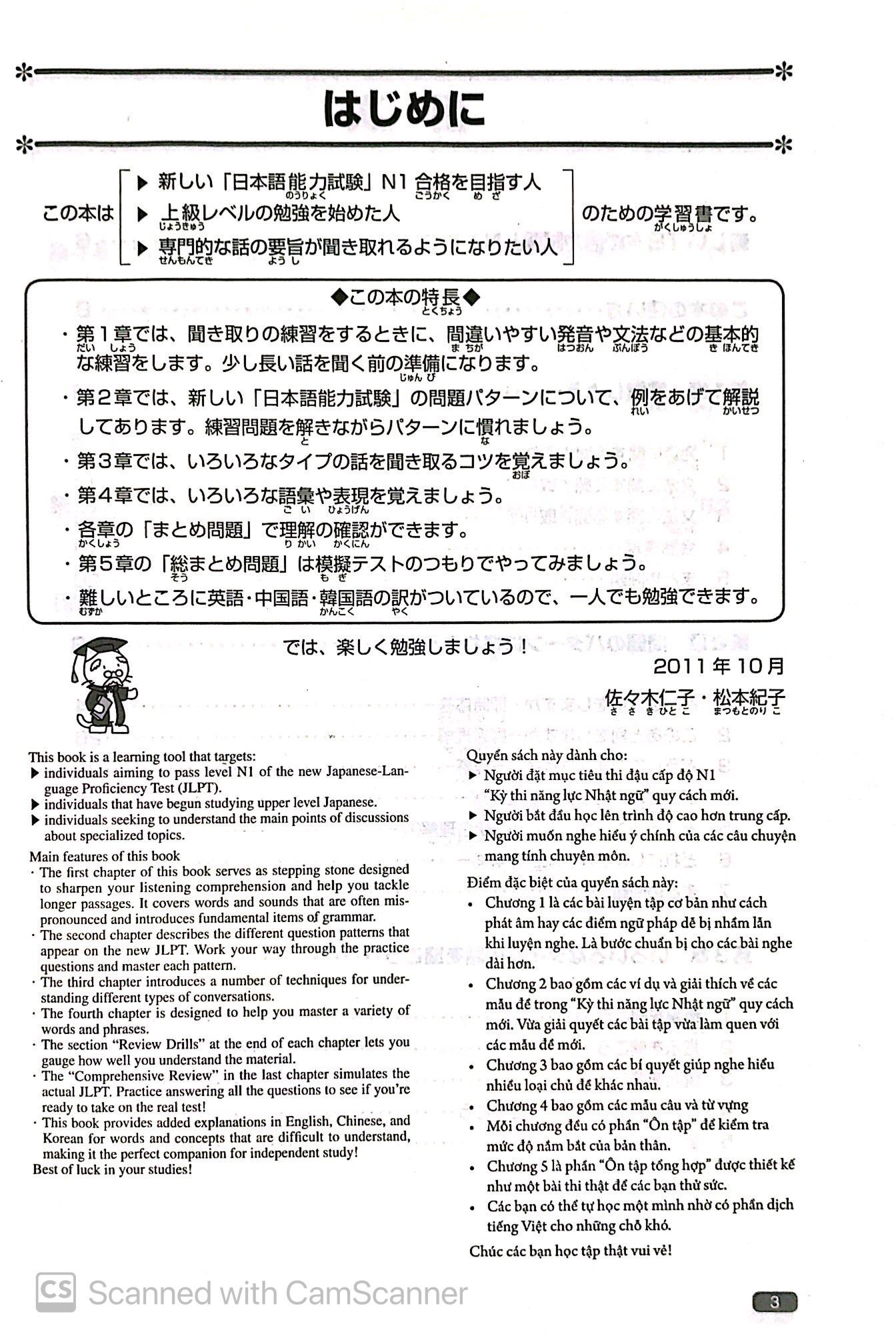 Mua tại TiktokLuyện Thi Năng Lực Nhật Ngữ N1 - Nghe Hiểu Luyện thi Năng lực Nhật ngữ N1 gồm 5 quyển: Hán tự (Kanji), Từ vựng (Goi), Đọc hiểu (Dokkai), Nghe hiểu (Choukai) và Ngữ pháp