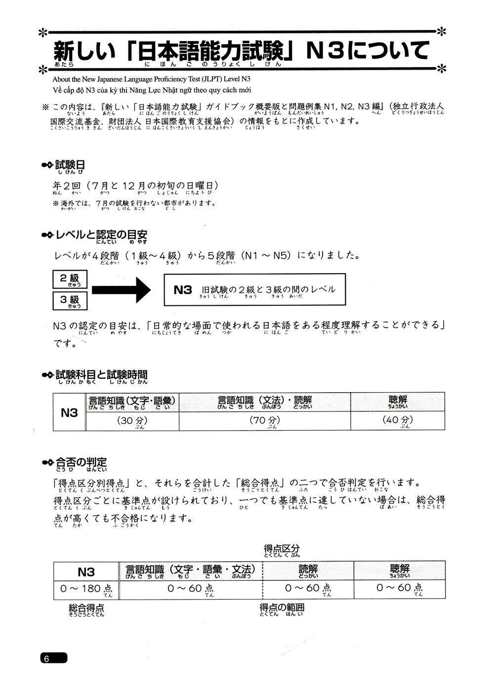 Bộ sách Nihongo somatome N3 này được xuất bản nhằm giúp bạn có được những kiến thức cần thiết một cách nhanh chóng, hiệu quả và hoàn thành tốt kỳ thi năng lực Nhật ngữ N3. Bộ sách này có 5 quyển: Hán tự (Kanji), Từ vựng (Goi), Đọc hiểu (Dokkai), Nghe hiểu (Choukai) và Ngữ pháp (Bunpou), do Nhà xuất bản ASK xuất bản và là một trong số các tựa sách học tiếng Nhật hàng đầu trong hệ thống phân phối sách Kinokuniya lớn nhất Nhật Bản. Hi vọng bộ sách sẽ giúp các bạn chuẩn bị tham gia kỳ thi năng lực Nhật ngữ JLPT nắm được những nội dung kiến thức cần phải có trong năng lực Nhật ngữ N3 một cách nhanh chóng, hiệu quả và tổng quát nhất trong khoảng thời gian từ 4 đến 6 tuần.