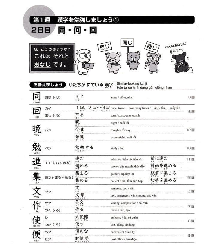 Điểm đặc biệt là sách được thiết kế theo ngày, mỗi ngày người học có thể ôn cả 3 kỹ năng : Từ vựng, Ngữ pháp, Hán tự chỉ với 15 phút. · Khổ sách