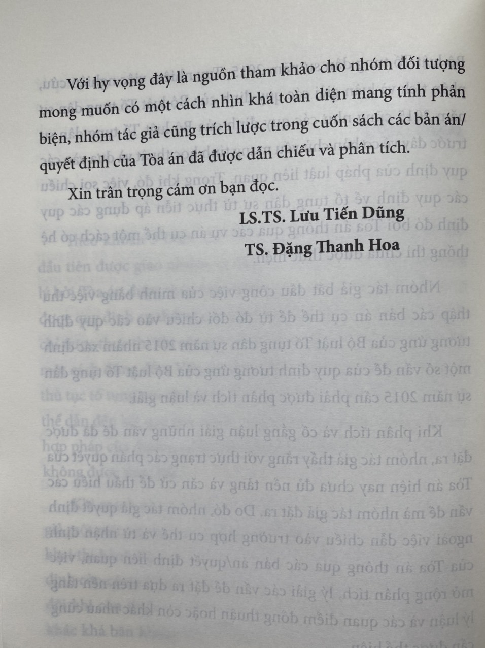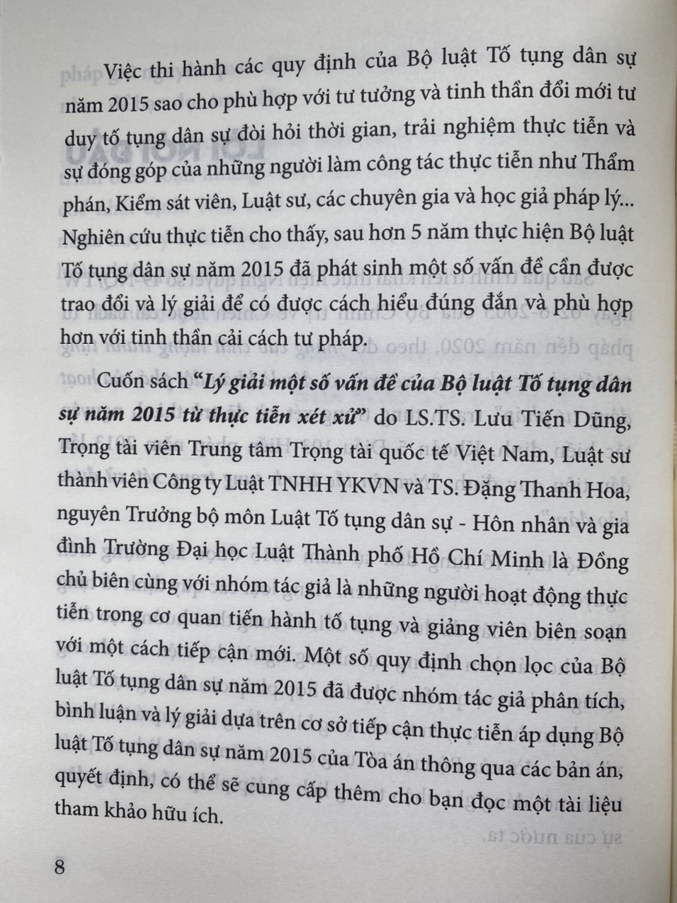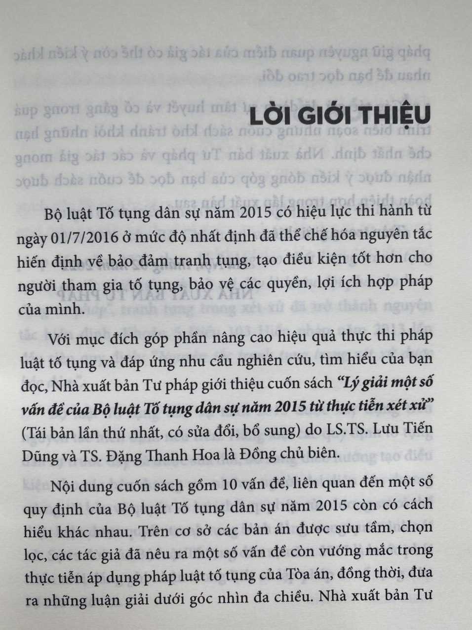 Cuốn sách " Lý giải một số vấn của Bộ luật Tố tụng dân sự năm 2015 từ thực tiễn xét xử" Tác giả: LS.TS. Lưu Tiến Dũng - TS. Đặng Thanh Hoa (Đồng