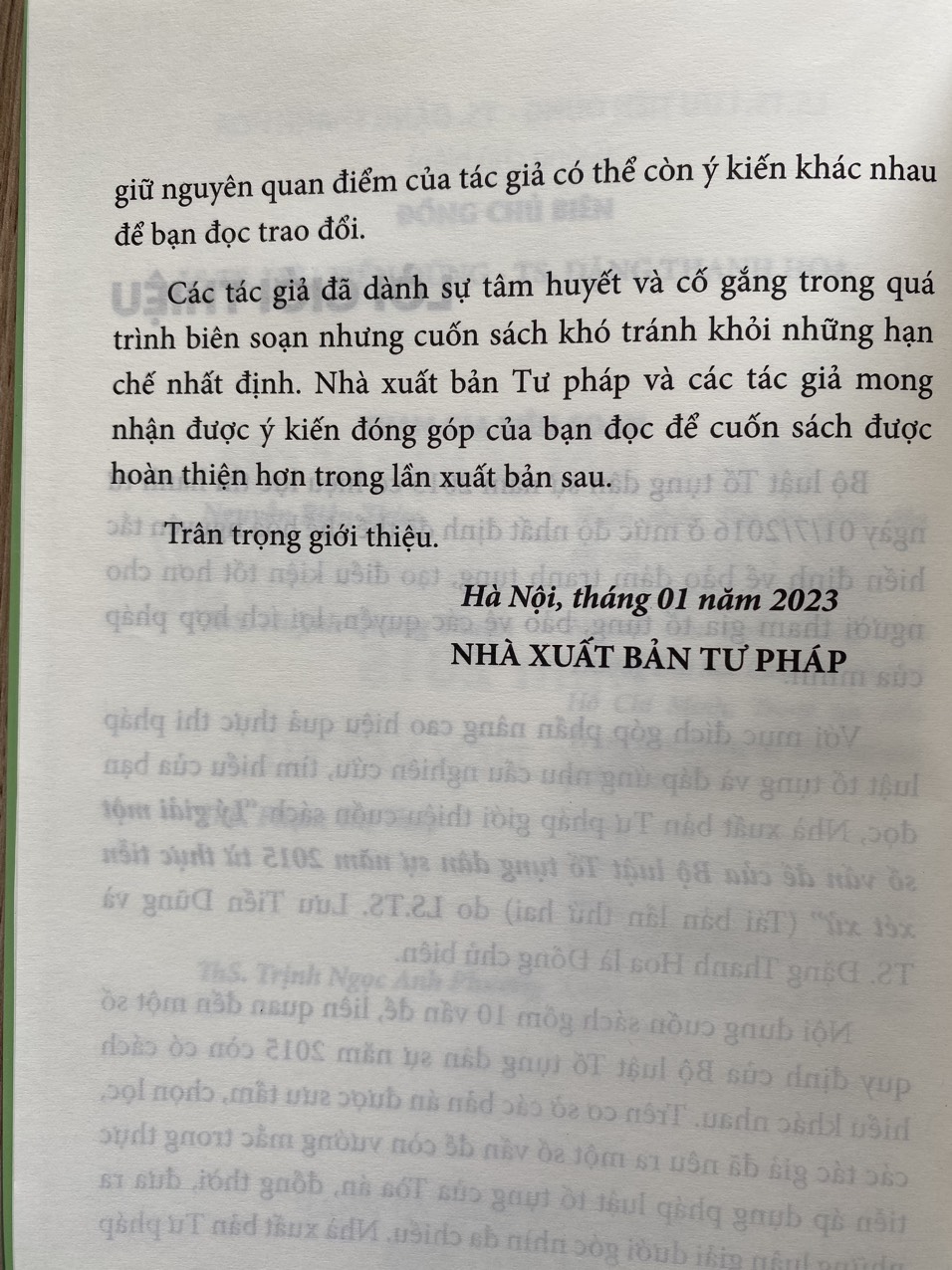 Cuốn sách " Lý giải một số vấn của Bộ luật Tố tụng dân sự năm 2015 từ thực tiễn xét xử" Tác giả: LS.TS. Lưu Tiến Dũng - TS. Đặng Thanh Hoa (Đồng chủ biên). Với mục đích góp phần nâng cao hiệu quả thực thi pháp luật tố tụng và đáp ứng nhu cầu nghiên cứu, tìm hiểu của bạn đọc, Nhà xuất bản Tư pháp giới thiệu cuốn sách “Lý giải một số vấn đề của Bộ luật Tố tụng dân sự năm 2015 từ thực tiễn xét xử” (Tái bản lần thứ nhất, có sửa đổi, bổ sung) do LS.TS. Lưu Tiến Dũng và TS. Đặng Thanh Hoa là đồng chủ biên. Nội dung cuốn sách gồm 10 vấn đề, liên quan đến một số quy định của Bộ luật Tố tụng dân sự năm 2015 còn có cách hiểu khác nhau. Trên cơ sở các bản án được sưu tầm, chọn lọc, các tác giả đã nêu ra một số vấn đề còn vướng mắc trong thực tiễn áp dụng pháp luật tố tụng của Tòa án, đồng thời, đưa ra những luận giải dưới góc nhìn đa chiều. Nhà xuất bản Tư pháp giữ nguyên quan điểm của tác giả có thể còn ý kiến khác nhau để bạn đọc trao đổi. Các tác giả đã dành sự tâm huyết và cố gắng trong quá trình biên soạn nhưng cuốn sách khó tránh khỏi những hạn chế nhất định. Nhà xuất bản Tư pháp và các tác giả mong nhận được ý kiến đóng góp của bạn đọc để cuốn sách được hoàn thiện hơn trong lần xuất bản sau. LUATVIETBOOK trân trọng giới thiệu!