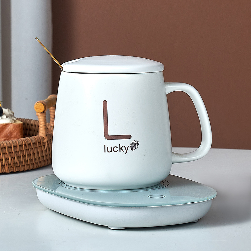Cốc hâm nóng có nắp kèm đế điện và thìa cao cấp