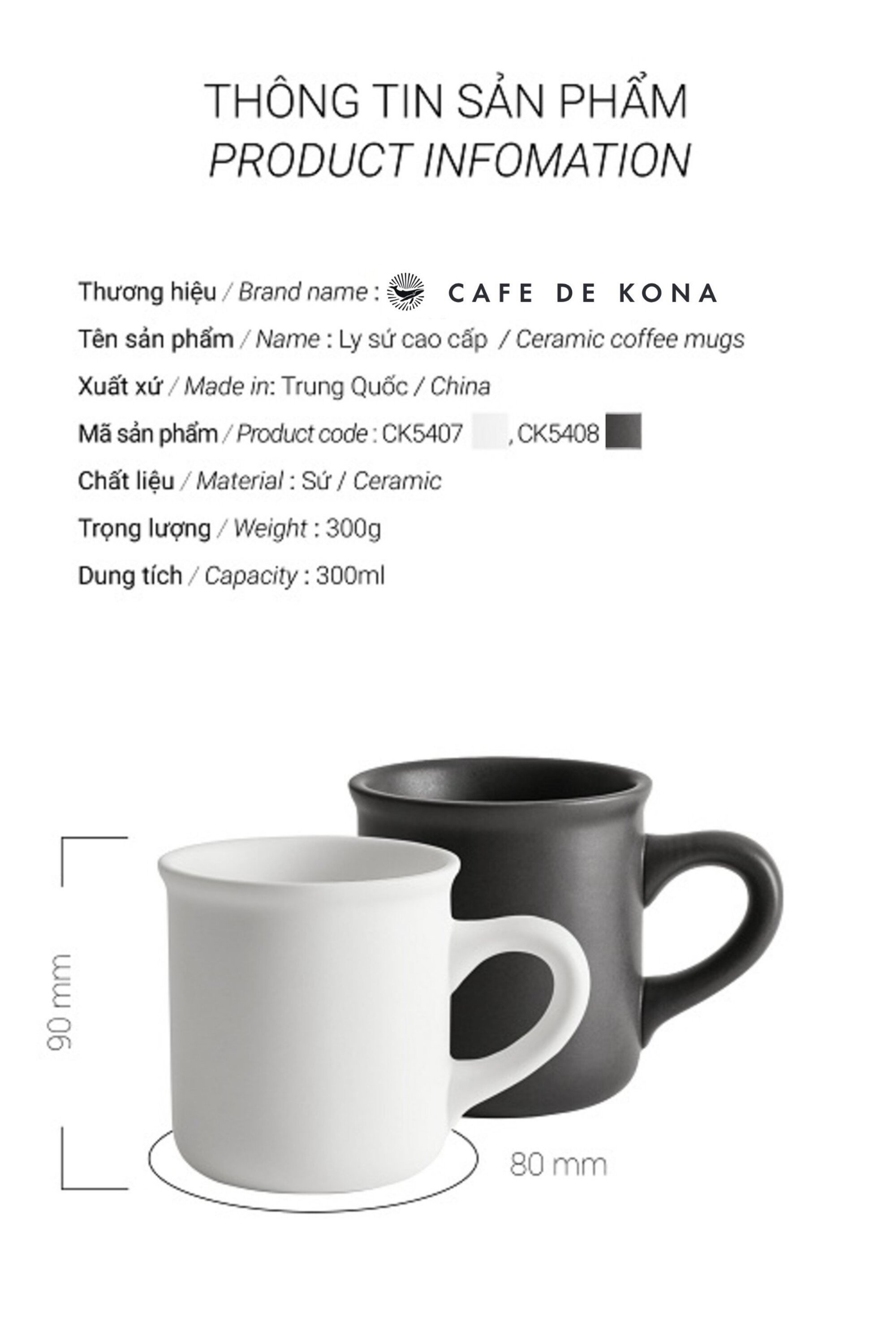 ✨Ly sứ cà phê cao cấp 300ml CAFE DE KONA