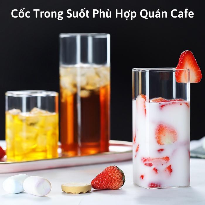 ✨Ly thủy tinh vuông trong suốt uống nước cute chịu nhiệt pha cafe sinh tố, Cốc thủy tinh vuông dễ thương cocktail