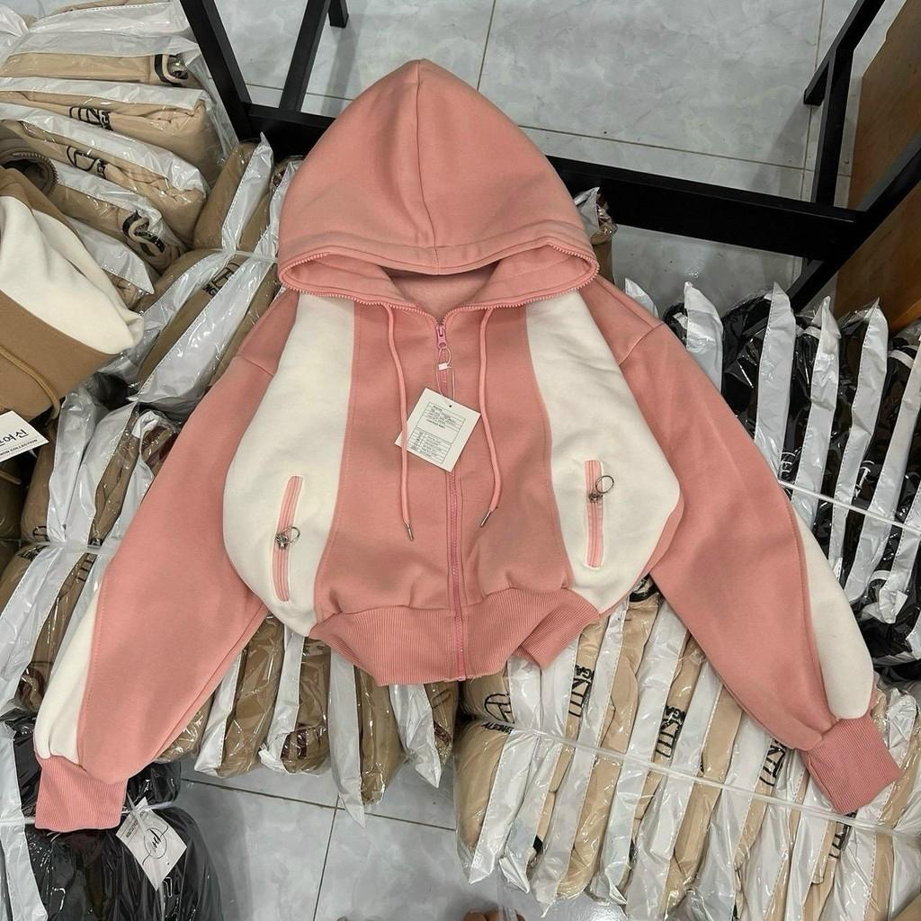 ✨[LZ] Áo khoác chống nắng nữ lửng nỉ dệt xk dày túi khoá phối màu có nón nhiều màu lựa chọn siêu hot-A2171