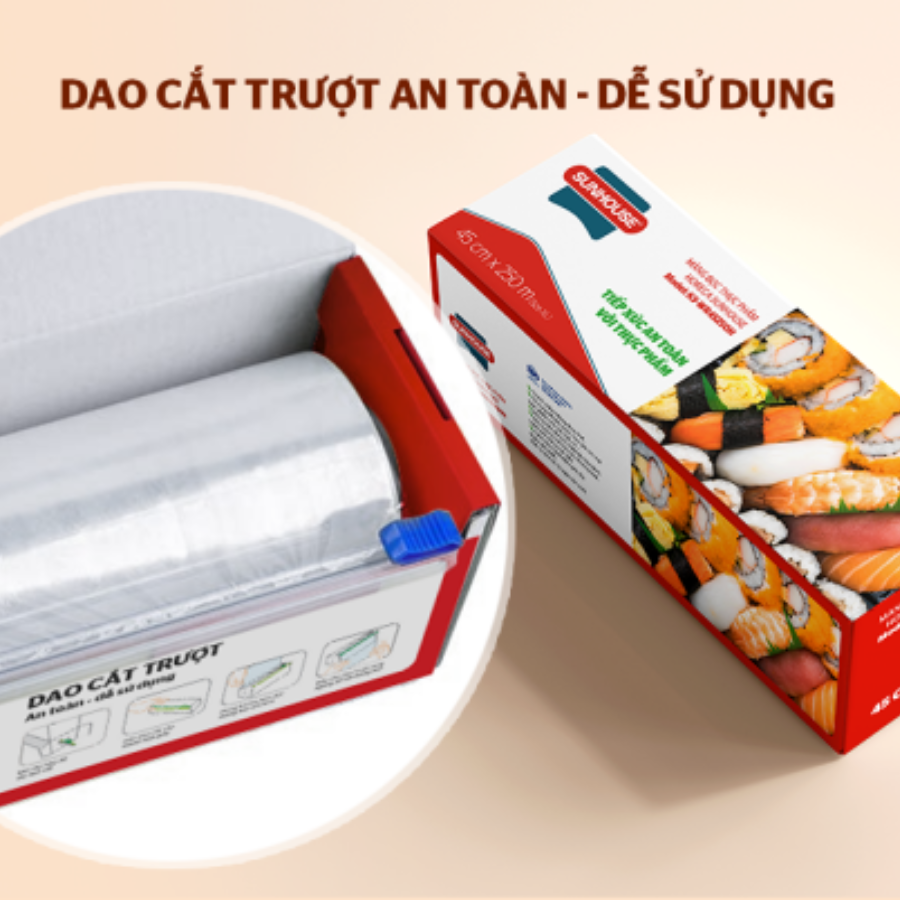 Màng bọc thực phẩm Sunhouse phù hợp dùng cho cả bảo quản thực phẩm chưa qua chế biến và thức ăn đã qua sơ chế.