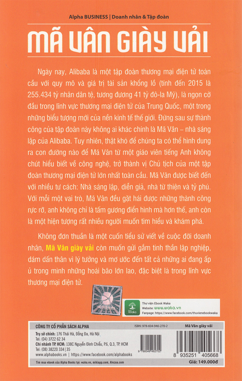 Ngày nay, ALIBABA là một tập đoàn thương mại điện tử toàn cầu với quy mô và giá trị tài sản khổng lồ (tính đến 2015 là 255.434 tỷ nhân dân tệ, tương đương 41 tỷ đô-la Mỹ), là ngọn cờ đầu trong lĩnh vực thương mại điện tử của Trung Quốc, một trong những biểu tượng mới của nền kinh tế thế giới. Đứng sau sự thành công của tập đoàn này không ai khác chính là Mã Vân - nhà sáng lập của Alibaba. Tuy nhiên, thật khó để chúng ta hình dung ra con đường nào để Mã Vân từ một giáo viên tiếng Anh không chút hiểu biết về công nghệ, trở thành vị Chủ tịch của một tập đoàn thương mại điện tử lớn nhất toàn cầu. Mã Vân được biết đến với nhiều tư cách: Nhà sáng lập, diễn giản, nhà từ thiện và tỷ phú. Với mỗi vai trò, Mã Vân đều gặp hái được những thành công rực rỡ, anh không chỉ là tấm gương điển hình mà hơn thế, anh còn là một hiện tượng rất nhiều người muốn tìm hiểu và khám phá.