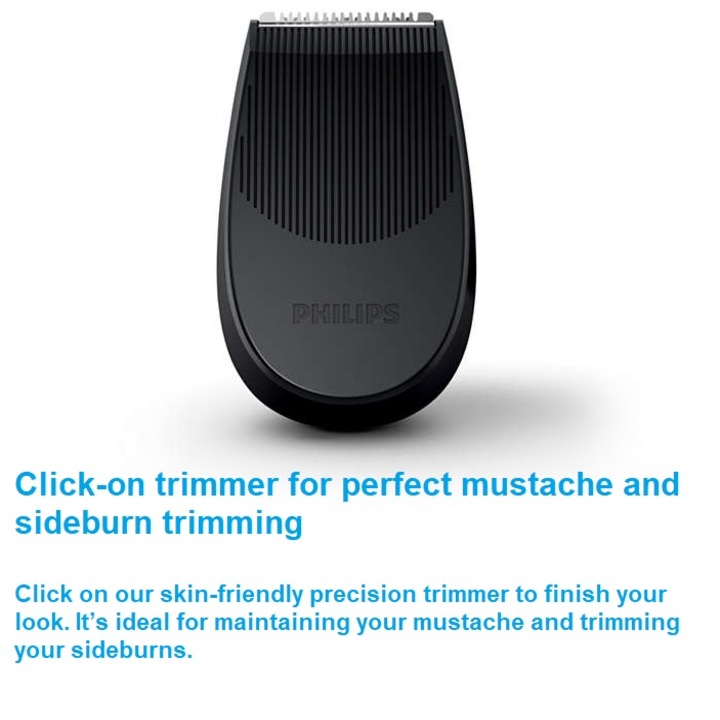 • Đầu tỉa dễ lắp ráp giúp tỉa ria mép và tóc mai hoàn hảo. Dùng đầu tỉa chính xác thân thiện với làn da để hoàn tất diện mạo của bạn. Đây là phụ kiện lý tưởng để bảo vệ bộ ria mép và cạo tóc mai đẹp. Thời gian sử dụng không dây 45 phút