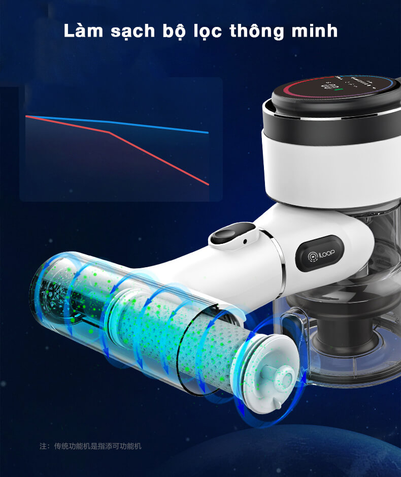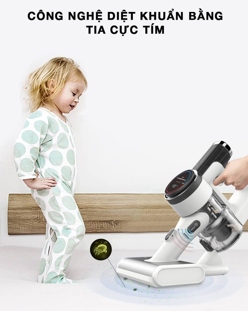 - Nhận dạng bằng cảm biến hồng ngoại, nhìn thấy bụi nhỏ vô hình tới 15 micro. Tự động điều chỉnh lực hút. Bụi bẩn càng ít thì công suất hút càng giảm, bụi bẩn nhiều thì công suất hút sẽ tăng. Điều này sẽ giúp tiết kiệm năng lượng mà vẫn đảm bảo hiệu quả làm sạch Màn hình Led thông minh, hiển thị trông tin trực quan. Trong quá trình làm sạch, độ sạch sẽ được hiển thị theo thời gian thực thông qua các vòng tròn màu đỏ và màu xanh lam. Các máy có chức năng truyền thống sẽ không ho bạn biết điều này. Màn hình lớn hiển thị thông tin chi tiết như độ sạch, chế độ làm việc, lượng pin thực tế, thông báo sự cố Công nghệ loại bỏ mạt, bọ ve... thông minh bằng tia cực tím, tạo ra một môi trường sống an toàn Nhận dạng bằng tia hồng ngoại có thể nhìn thấy nơi có mạt bụi, bọ, dệp... sau đó được chiếu tia cực tím 253,7nm4. Những con mạt ẩn nấp sẽ bò ra và bị tiêu diệt, đồng thời bị hút đi ngay lập tức.Tạo môi trường sống an toàn cho gia đình Chuyển đổi tần số thông minh, yên tĩnh hơn, cuộc sống hàng ngày không quá ồn ào