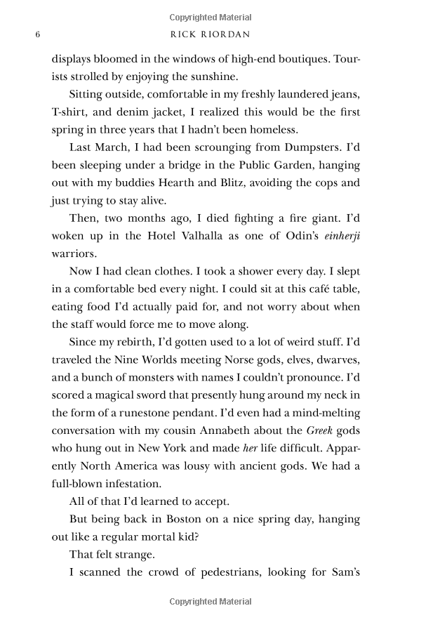 Magnus Chase has seen his share of trouble. Ever since that terrible night two years ago when his mother told him to run, he has lived alone on the streets of Boston, surviving by his wits, staying one step ahead of the police and truant officers. One day, he's tracked down by an uncle he barely knows-a man his mother claimed was dangerous. Uncle Randolph tells him an impossible secret: Magnus is the son of a Norse god. The Viking myths are true. The gods of Asgard are preparing for war. Trolls, giants, and worse monsters are stirring for doomsday. To prevent Ragnarok, Magnus must search the Nine Worlds for a weapon that has been lost for thousands of years. When an attack by fire giants forces him to choose between his own safety and the lives of hundreds of innocents, Magnus makes a fatal decision. Sometimes, the only way to start a new life is to die . . .