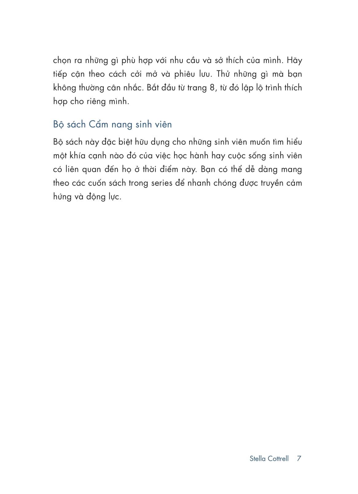 MÀI GIŨA KỸ NĂNG – VƯỢT TRỘI ĐIỂM SỐ với 50 mẹo nhỏ linh hoạt mà hữu ích cần có cho các bạn học sinh/sinh viên với các chỉ dẫn chi tiết: tự lên lộ trình học tập cho riêng bản thân; kiểm soát thời gian trong việc ôn tập và các kỳ thi; tinh chỉnh bài làm để đạt thêm điểm cộng; chọn lọc kiến thức một cách chủ động và bồi dưỡng sức khỏe tinh thần. Đây cũng là cuốn sách thứ 3 trong bộ Cẩm nang sinh viên, được viết bởi Stella Cottrell – chuyên gia giáo dục và hướng nghiệp người Anh, tác giả của Lộ trình bạn đi Tương lai bạn chọn và Tháo gỡ căng thẳng Mở lối tiềm năng – những cuốn sách hữu ích nổi tiếng với các bạn trẻ.