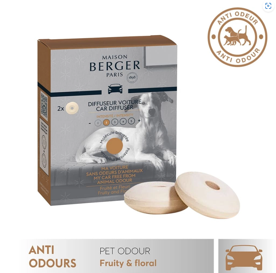 ✨Maison Berger - Bộ tinh dầu xe hơi, khử mùi thú cưng hương Fruity & Floral - 2 cái