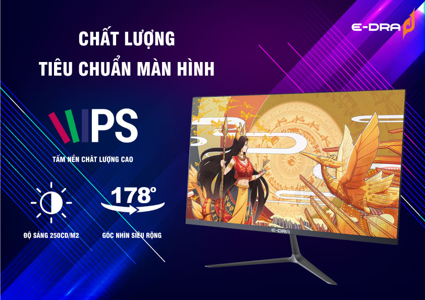 Màn hình máy tính E-DRA EGM24F1 Trong thời gian trở lại đây, chúng ta đều có thể thấy được một bước chuyển mình mạnh mẽ của E-DRA, dần trở thành một thương hiệu cực kì đáng lựa chọn với dải sản phẩm rộng lớn cùng mức giá thành không thể yêu thương hơn. Không chỉ nổi tiếng với những mẫu chuột, bàn phím, bàn hay ghế… màn hình gaming cũng là một trong những thế mạnh nổi bật của E-DRA. Trong bài viết ngày hôm nay, mình xin giới thiệu tới các bạn EGM24F1, chiếc màn hình Gaming cực kì đáng sở hữu và vừa được E-DRA cho ra mắt. Trải Nghiệm Mượt Mà Đến Ấn Tượng Đối với một chiếc màn hình gaming, tần số quét và tốc độ phản hồi luôn là hai yếu tố được quan tâm hàng đầu bởi những lợi thế vượt trội mà chúng có thể đem lại. Chiếc màn hình máy tính E-DRA EGM24F1 sở hữu mức tần số quét lên tới 144Hz cùng thời gian phản hồi chỉ 1ms. Đây là combo thông số thực sự vô cùng ấn tượng trong tầm giá, đảm bảo cho các bạn sự mượt mà trong từng khung hình cũng như giúp hạn chế tối đa hiện tượng bóng mờ chuyển động (ghosting) cực kì khó chịu. EGM24F1 sẽ mang đến cho các bạn những lợi thế cạnh tranh tuyệt vời so với đối thủ, luôn sánh vai cùng các bạn trên mọi bậc xếp hạng. Chất Lượng Hình Ảnh Hiển Thị Vượt Trội Nhờ được trang bị công nghệ tấm nền IPS cao cấp, E-DRA EGM24F1 sẽ đảm bảo mang đến cho các bạn một trải nghiệm hình ảnh chân thực, rực rỡ và đã mắt. Chiếc màn hình đến từ E-DRA có khả năng hiển thị 16,7 triệu màu kết hợp cùng góc nhìn cực rộng lên tới 178 độ, mang đến cho các bạn những trải nghiệm màu sắc tuyệt vời nhất kể cả khi các bạn xem cùng nhiều người, ngồi ở nhiều góc độ khác nhau. Không dừng lại ở đó, EGM24F1 còn sở hữu độ phân giải FHD (1920x1080) cùng độ sáng màn hình vượt trội lên đến 250 cd/m2. Mang đến những hình ảnh chi tiết, sắc nét cùng độ sáng tối ưu kết hợp với độ chân thực màu sắc cao giúp các bạn hoàn toàn có thể thực hiện những công việc đồ họa cơ bản trên chiếc màn hình. Thiết Kế Chuẩn Gaming Đối với một chiếc màn hình gaming, thiết kế hầm hồ luôn là một trong những yếu tố cực kì được quan tâm. Và không phụ lòng mong đợi từ cộng đồng người dùng, E-DRA đã trang bị cho chiếc màn hình EGM24F1 một thiết kế cực kì ấn tượng. Màn hình có phần tầm nền siêu mỏng mang lại vẻ sắc sảo, mặt lưng là logo E-DRA kết hợp cùng những đường vân cá tính chạy dọc theo thân máy. Chân đế chữ V vừa đem lại sự cá tính cho chiếc màn hình, vừa giúp tiết kiệm không gian trên bàn làm việc trong khi vẫn đảm bảo sự chắc chắn cho chiếc màn hình khi sử dụng. Hỗ Trợ Đa Dạng Cổng Kết Nối Chiếc màn hình đến từ E-DRA này còn sở hữu khá đầy đủ cổng kết nối để các bạn có thể thoải mái lựa chọn và sử dụng. Chiếc màn hình gaming EGM24F1 sẽ bao gồm 1x cổng HDMI, 1x cổng DisplayPort, 1x cổng USB và 1x cổng Audio 3.5. Trong vỏ hộp sẽ có sẵn 1x dây DisplayPort để các bạn có thể sử dụng chiếc màn hình ngay khi mua về mà không phải lo lắng gì thêm.