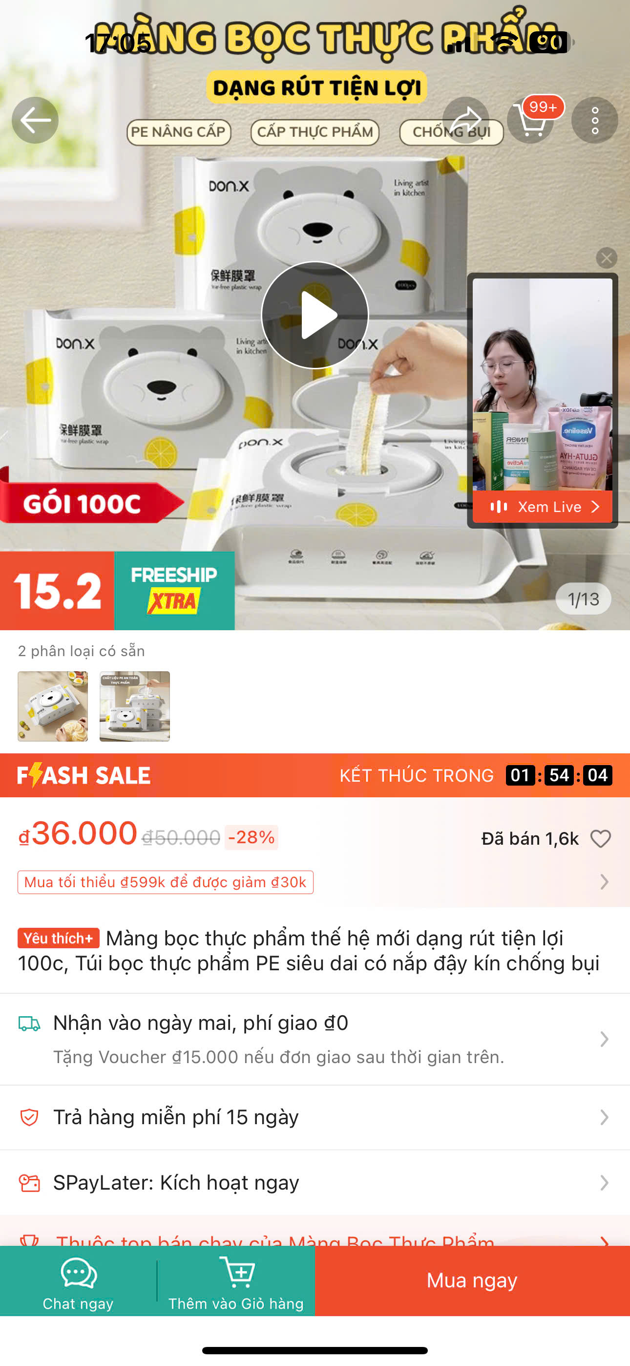 THÀNH PHẦN Thành phần: Polyethylen (PE) Thông số kĩ thuật: Kích thước cuộn: 22 cm x 50 m CÔNG DỤNG Công dụng: Dùng để bảo quản, bao gói các loại thực phẩm (trái cây, thịt,