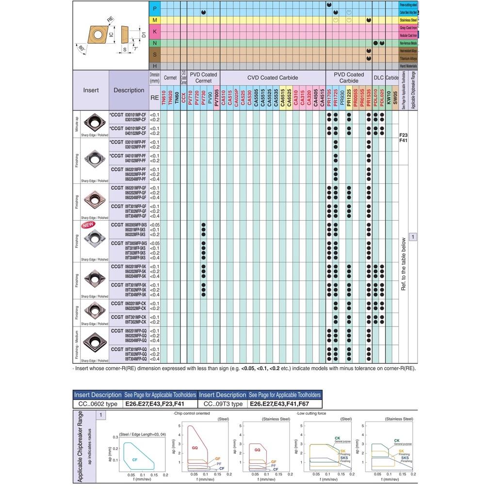 Work material K (cast iron) [○] / N (non-ferrous metal) [○] / S (heat resistant alloy / titanium alloy) [○]