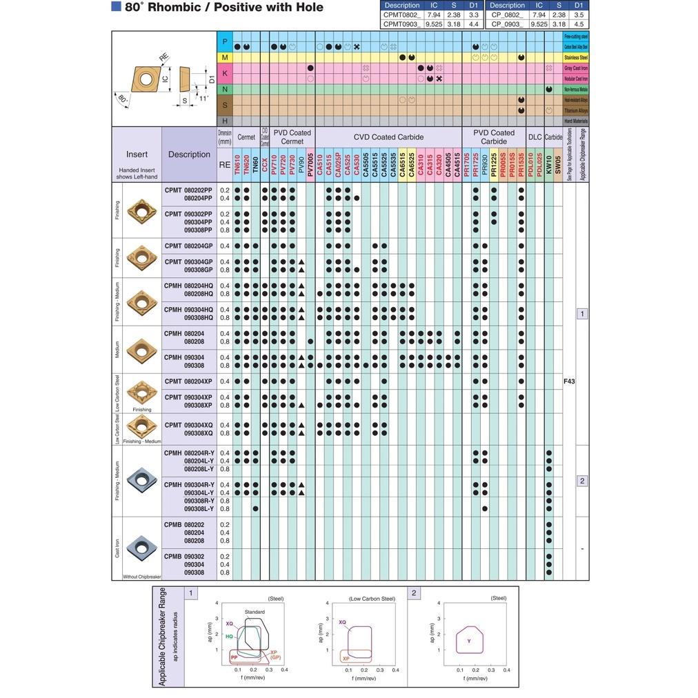 Mảnh dao tiện lỗ phủ Cermet phủ PVD Kyocera Model CPMT080204XP PV7010, Hàng Chính Hãng Chất Lượng Uy Tín