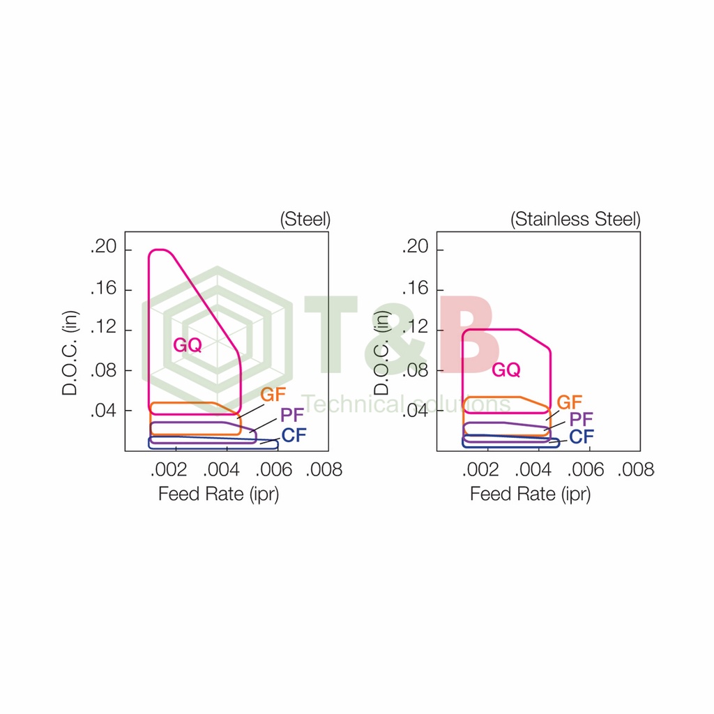THÔNG SỐ shape C (80 ° rhombus) Use (breaker) Medium cutting Grade (base material) Carbide selfish none Work material condition Light intermittent thickness 02 (2.38) accuracy G Number of available corners 2 Work material P (steel) [○] / M (stainless steel) [○] Corner R (nose R) (mm) 0.4 0.4 Escape angle Positive 7 ° (C) coating PVD coating Cutting edge length 06 06 Groove / hole T (with holes) Wiper blade none Grade symbol PR1225