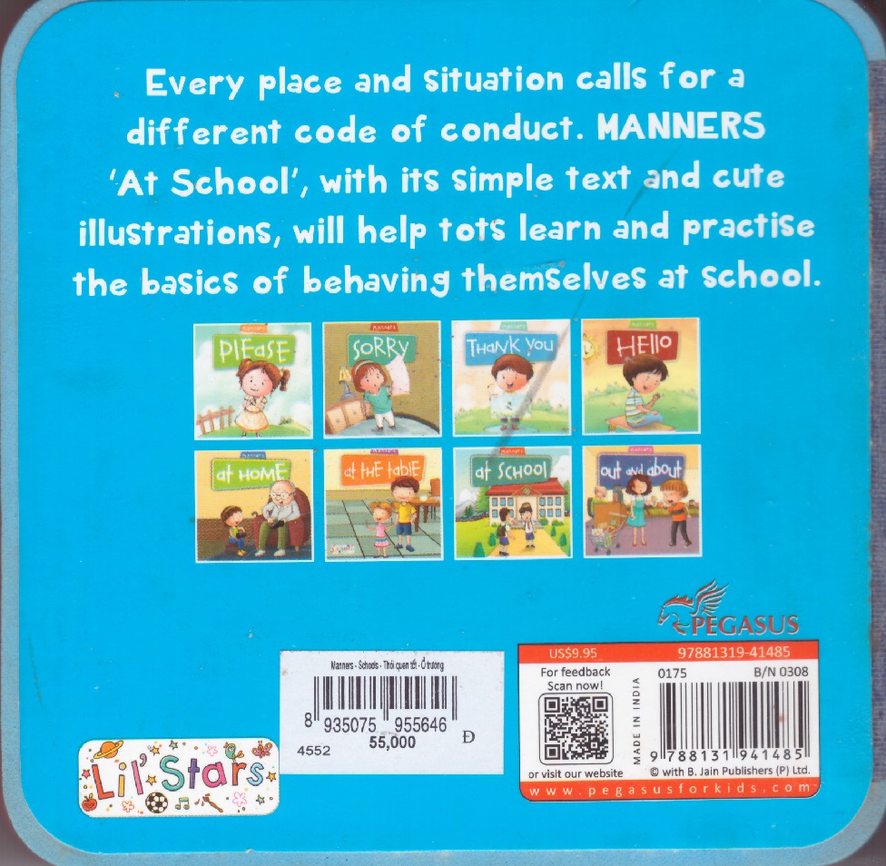 Every place and situation calls for a different code of conduct. Manners "At home", with its simple text and cute illustrations, will help tots learn and practise the basics of behaving themselves at home