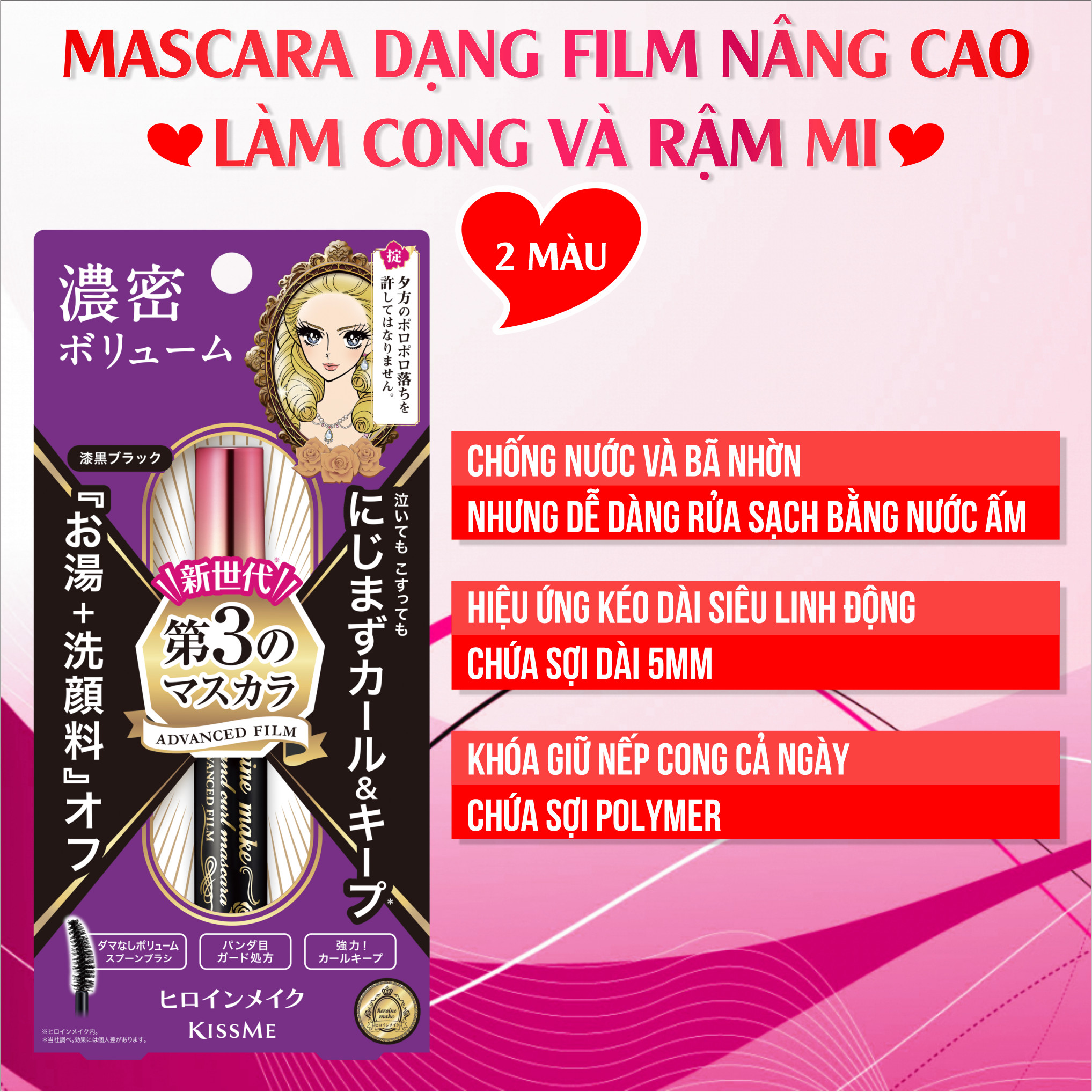 Mascara Chống Trôi Siêu Bền Giúp Nâng Cong Và Dày Mi Kissme Heroine Make Long & Curl Mascara Advanced Film