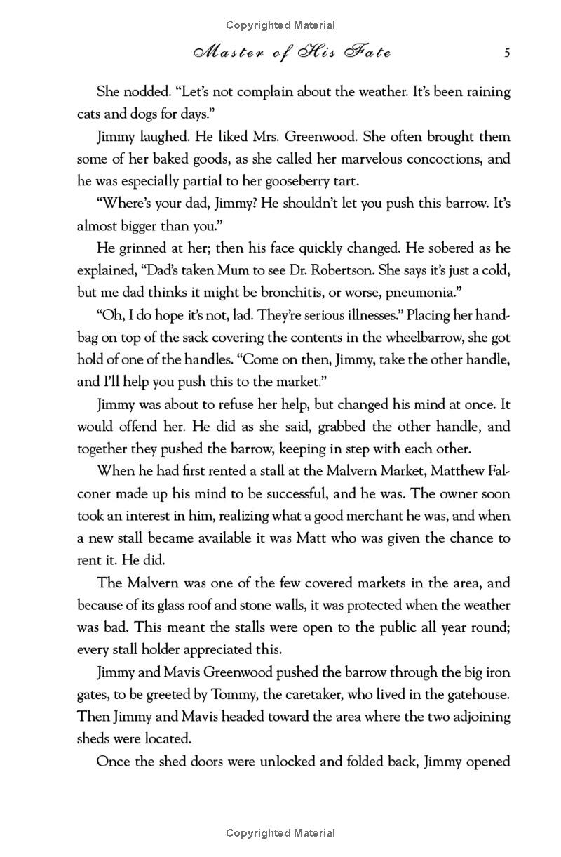 Victorian England is a country of sharp divides between rich and poor, but James Lionel Falconer, who spends his days working at his father’s market stall, is determined to become a merchant prince. Even as a child, he is everything a self-made man should be: handsome, ambitious, charming, and brimming with self-confidence. James quickly rises through the ranks, proving himself both hardworking and trustworthy, and catching the eye of Henry Malvern, head of the most prestigious shipping company in London. But when threats against his reputation – and his life - begin to emerge, James will have to prove that he truly is the master of his fate.