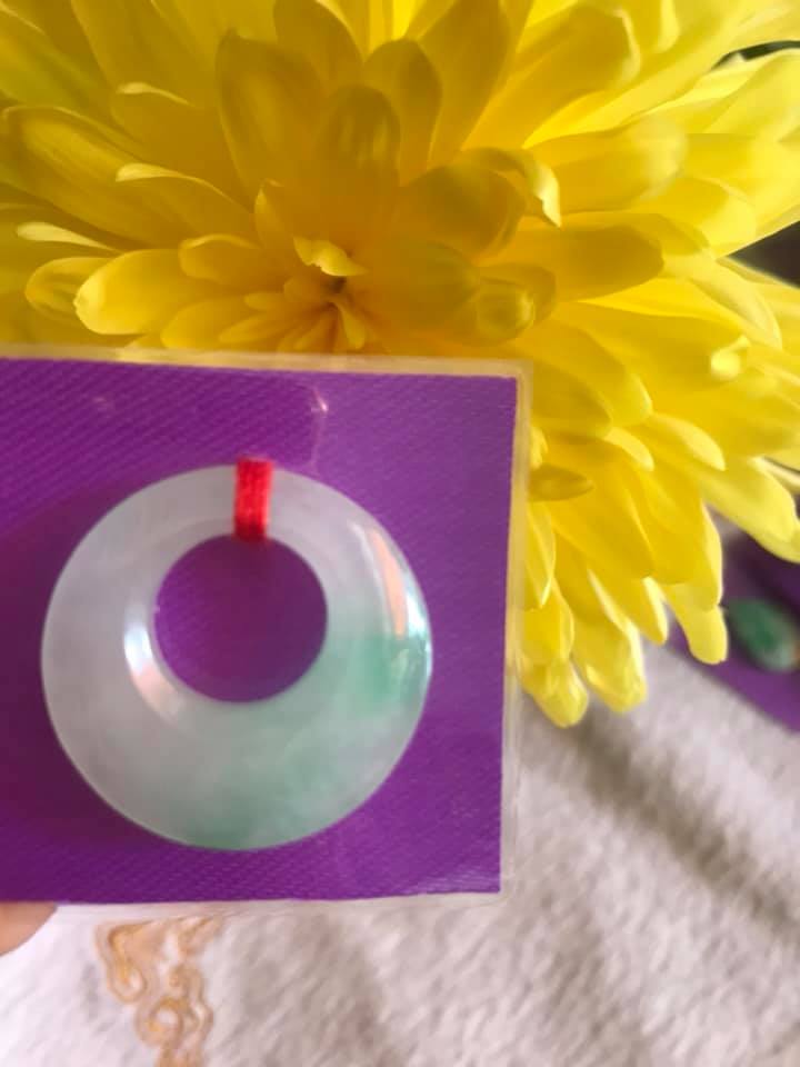 Mặt Dây Chuyền ĐỒNG ĐIẾU KIỂU TRÒN GIỮA TO ĐÁ Cẩm Thạch Tự Nhiên Size 26,5mm x Dầy 5mm x Đk tròn bên trong 11mm MÀU TRẮNG XANH LÁ BÓNG đá tự nhiên Đẹp ạ