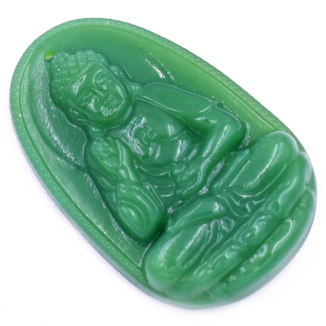 Thông tin sản phẩm: Mặt dây chuyền Phật A di đà đá xanh 2.2 x 3.6cm ( size trung ) kèm vòng cổ dây da xanh lá + móc inox, Phật bản mệnh