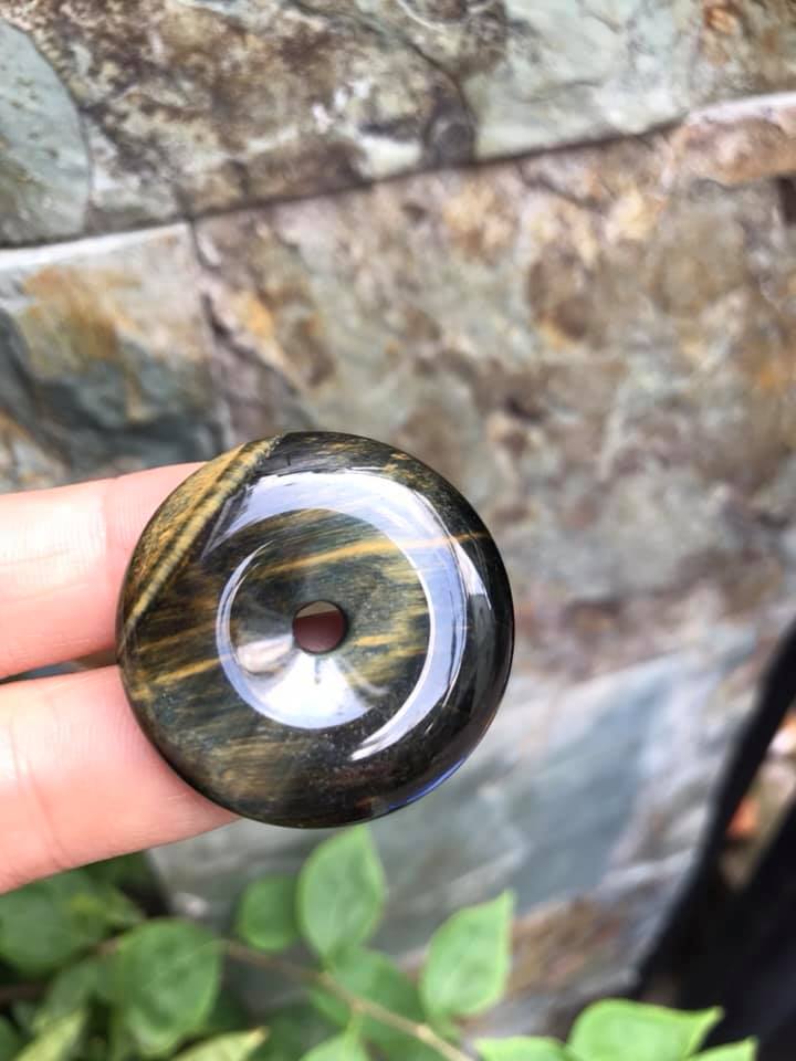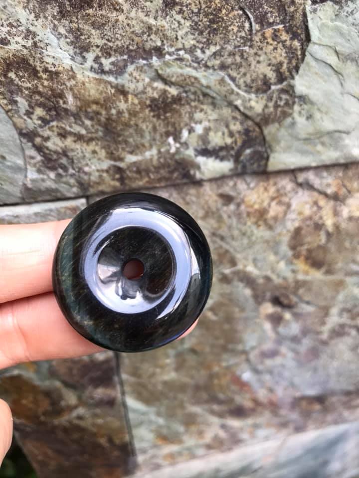 ✨Mặt Dây Chuyềnn Đồng Tiền Điếu đá mắt hổ đen xanh xíu vàng tự nhiên size 33mm x dầy 8,5mm Nam mệnh Thủy Mộc