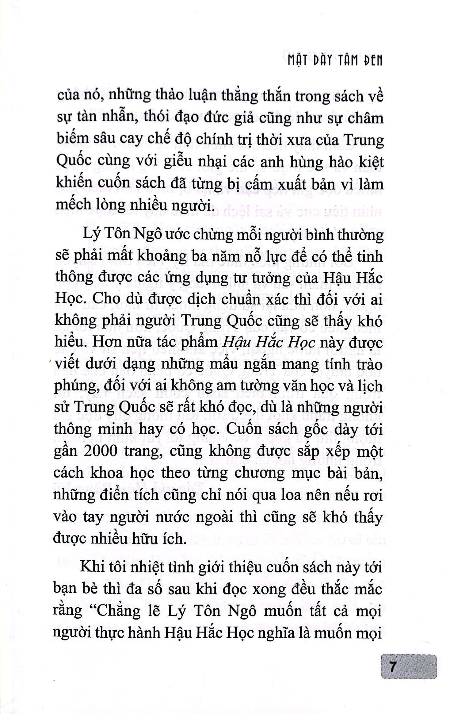 Để có được nhân duyên tốt, cần phải biết khoan dung, độ lượng. Cho dù gặp chuyện không vừa lòng, bực tức, khó chịu thì cũng nên khoan dung bỏ qua. Cần phải luyện được phần Hậu (mặt dày) và Hắc (tâm đen), một khi Hậu Hắc của bạn đủ thâm sâu thì bạn sẽ không còn cảm thấy quá khó chịu với những chuyện không vừa ý gặp phải mỗi ngày nữa.