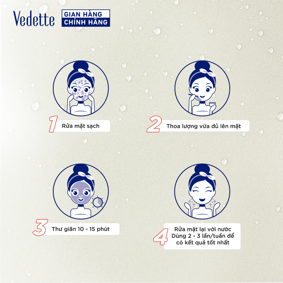 Mặt nạ đất sét sạch sâu dịu nhẹ Ngọc Trai Vedette Clay Mask Pearl thấm hút tối đa lớp bụi bẩn và bã nhờn từ sâu trong lỗ chân lông, giữ da luôn thoáng sạch