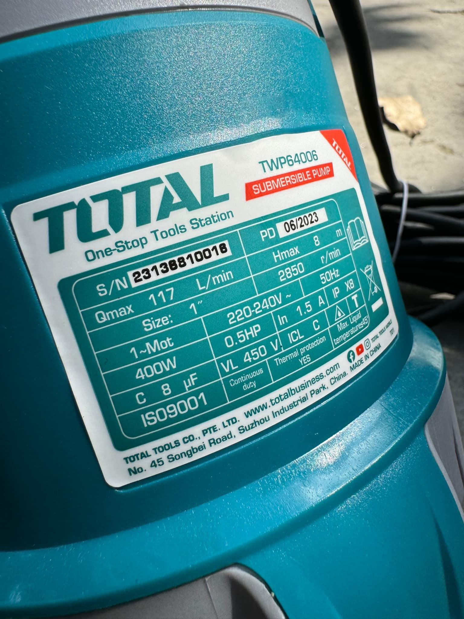 Máy bơm nước 2200W Total TWP222002 là một sản phẩm chất lượng cao với thiết kế bơm ly tâm giúp đẩy nhanh lượng nước cần bơm, đầu bơm tối đa 15m và tốc độ dòng