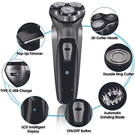 Thông tin sản phẩm Máy Cạo Râu Sử Dụng Sạc Pin Thông Minh Tiện Lợi Có Lưỡi Dao Kép Tự Làm Sắc, độ bền cao, cạo sát chân, cực sạch - Công suất: 2W -