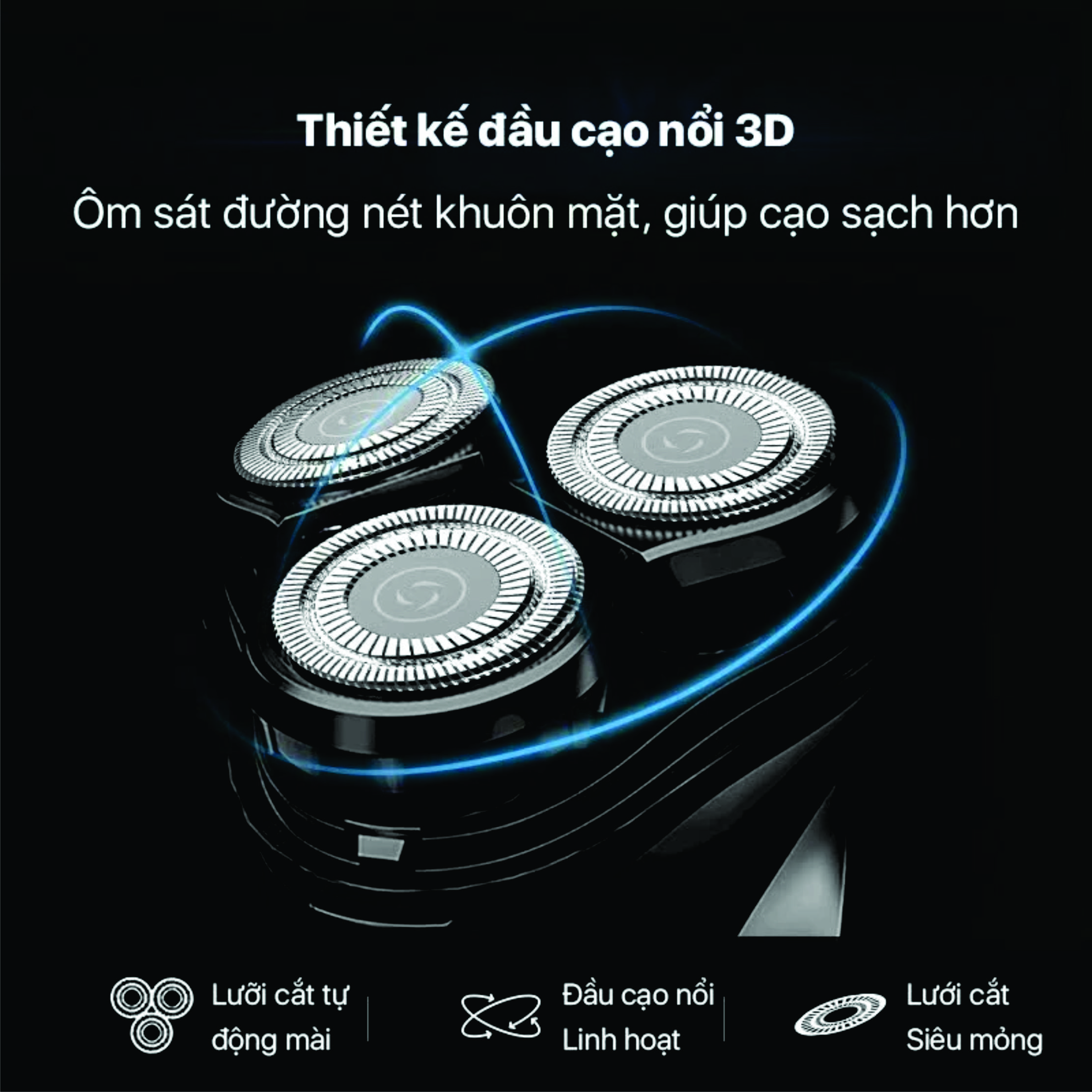 Lưới lưỡi dao hai vòng mỏng giúp cải thiện đáng kể hiệu quả cạo râu. Động cơ mạnh với siêu công suất 5W, độ ồn thấp 67dB, mang lại trải nghiệm cạo râu thoải mái hơn nhiều