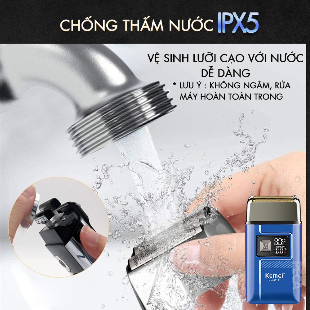 MÁY CẠO RÂU KHÔ KEMEI KM-1112 CAO CẤP CÔNG SUẤT 5W MẠNH MẼ 2 MỨC TỐC ĐỘ MÀN HÌNH LCD THÔNG MINH TOÀN THÂN KIM LOẠI SÁNG BÓNG
