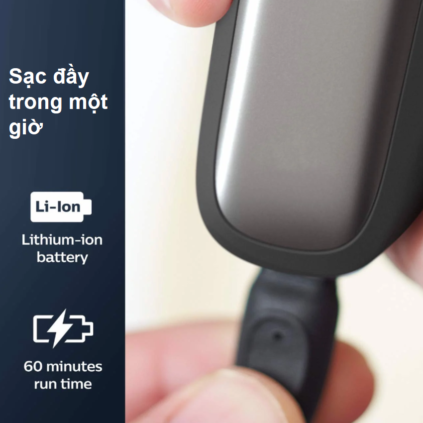 - Máy cạo râu này cho phép bạn sử dụng không dây lên đến 60 phút sau 1 giờ sạc hoặc cắm điện để sử dụng ngay lập tức và liên tục. Sạc đầy sau 1 giờ