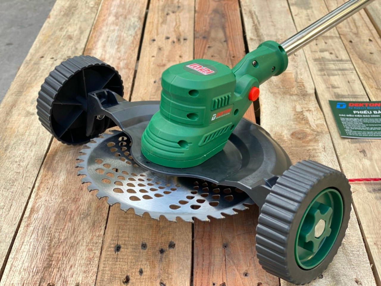 Thông số kỹ thuật -Model: M21-CC2302 -Hãng: Dekton -Sản Xuất: Trung Quốc -Motor BRUSHLESS -Điện áp 21V -Lưỡi cắt 230mm, 2 lưỡi, 1 lưỡi cước, lưỡi dùng chung với máy cắt cỏ xăng -Bánh xe Có -Bảo hành: 6 Tháng