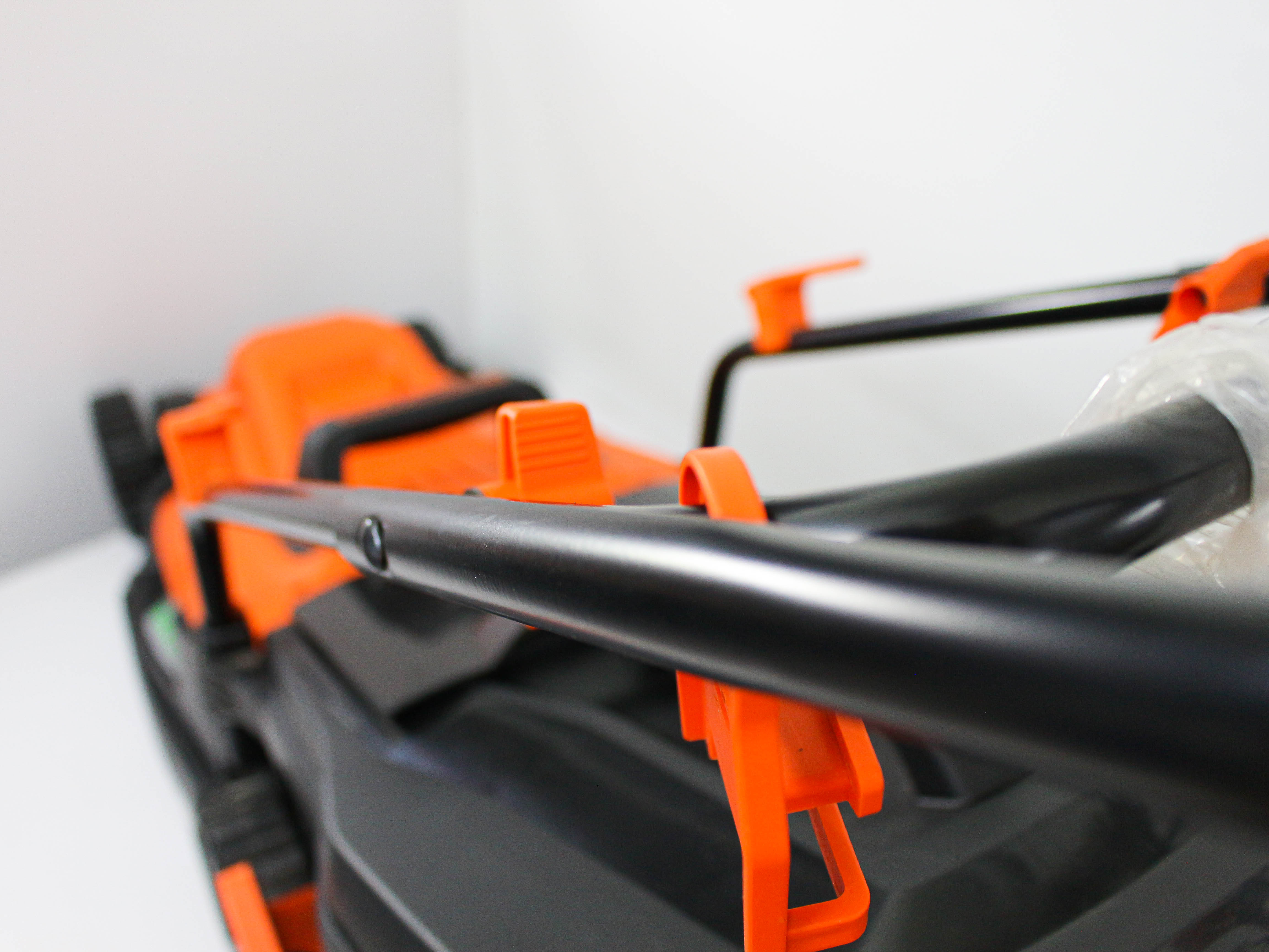 Máy hoạt động mạnh mẽ nhờ sử dụng motor điện công suất 1.400W, trang bị hộp chứa cỏ dung tích 40 lít giúp máy hoạt động liên tục.