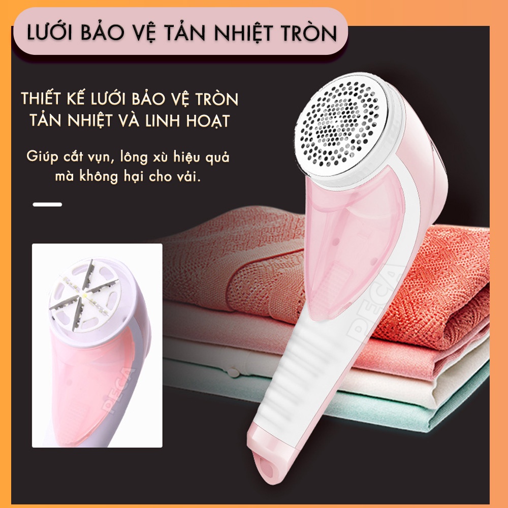 - Ga giường, bao gối... Chỉ cần sở hữu 1 chiếc máy bạn có thể tân trang làm mới cho cả ngôi nhà 1 cách tiện lợi và nhanh chóng. Với thiết kế lưới bảo vệ thông minh, giúp cho máy cắt dễ dàng nhanh chóng mà không lo cắt đi phần vải không mong muốn. Lông xù được loại bỏ dễ dàng, ngoài ra còn tản nhiệt rất tốt. Ngăn chứa vụn vải lớn và trong suốt, giúp bạn vệ sinh dễ dàng và có thể quan sát tình trạng vụn vải trong ngăn chứa, cũng như thu dọn gọn gàng mà không gây vươn vãi ra ngoài khi cắt. Công suất 9W mạnh mẽ cho đường cắt chính xác, nhanh gọn, tiết kiệm thời gian quý báu của bạn. Chế độ đèn báo sạc thông minh giúp bạn kiểm soát dễ dàng khi sạc và dử dụng.