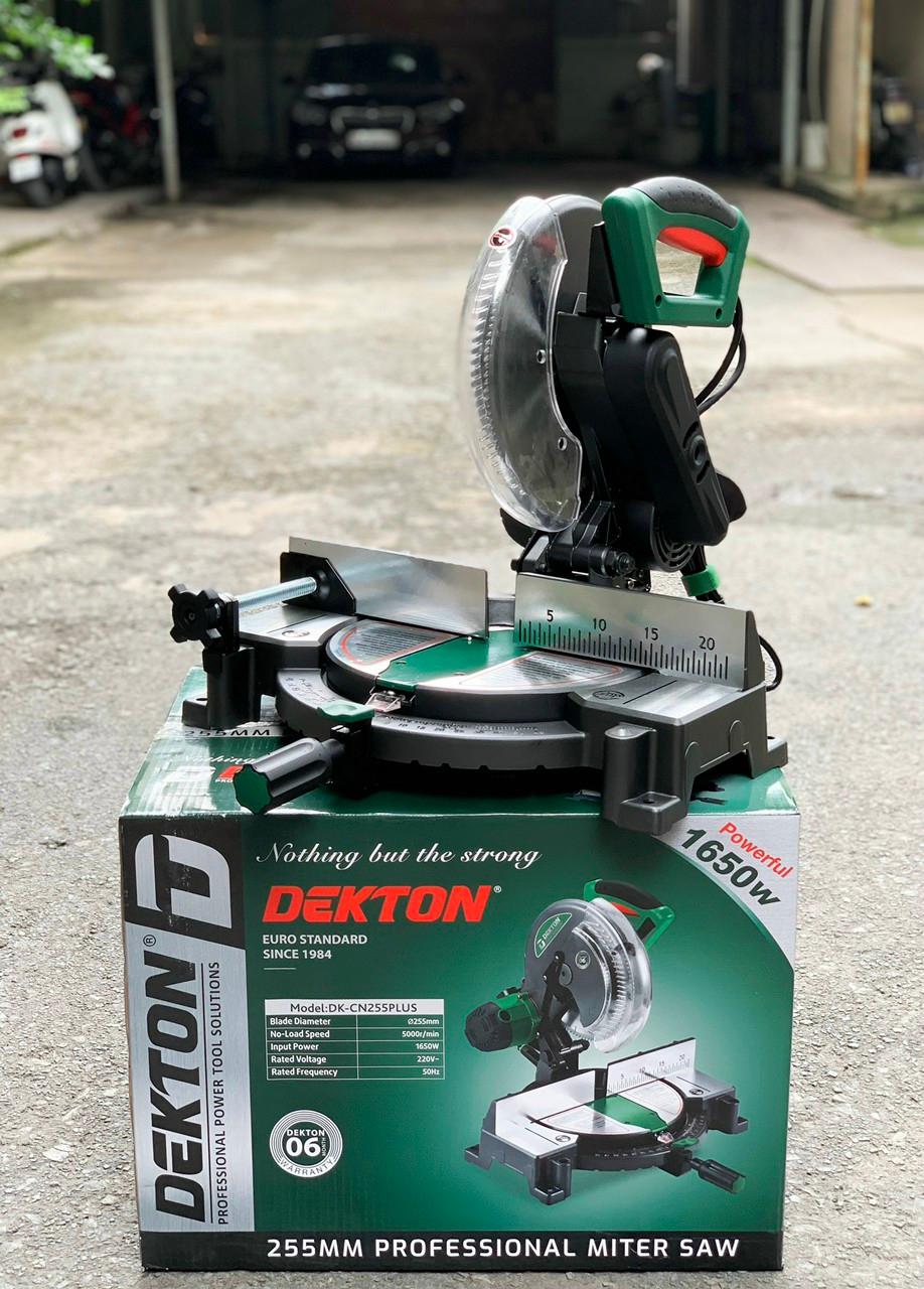 -Máy cắt nhôm Dekton 255B dây curoa là máy cắt nhôm chuyên dụng dành cho thi công cửa nhôm kính, gia công tủ kệ với vết cắt chính xác, góc cắt thẳng, đẹp.