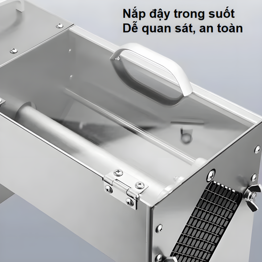- Máy cắt khoai tây chiên tuy là một thiết bị tự động nhưng máy có thiết kế nhỏ gọn, kích thước 620 x 170 x 170mm, có thể di chuyển hoặc đặt cố định ở mọi vị trí mà không tốn diện tích - Thân máy được làm bằng vật liệu inox 304 sáng bóng, khả năng chống han gỉ cao giúp hạn chế những tác động của ngoại cảnh và môi trường bếp nấu. Đặc biệt chất liệu inox cao cấp, không làm ảnh hưởng đến màu sắc và mùi vị của nguyên liệu, đảm bảo vệ sinh an toàn thực phẩm Vệ sinh máy dễ dàng, đảm bảo an toàn vệ sinh thực phẩm