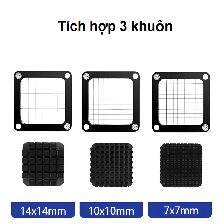 - Máy cắt rau củ Septree SL-12 có chức năng cắt vuông nhiều loại củ quả như khoai lang, khoai tây, củ cải, cà rốt, su hào, dưa chuột… một cách nhanh chóng và đồng đều. Máy cắt khoai lang chiên thích hợp sử dụng trong các quầy đồ ăn nhanh, quán ăn vặt, KFC, quán cafe, nhà hàng, khách sạn hay các hộ kinh doanh nhỏ lẻ - Các món ăn từ khoai tây, khoai lang chiên, lắc đang là món ăn vặt hấp dẫn, và không thể thiếu trong thực đơn của các quán ăn nhanh, nhà hàng, hay cả trong các bếp ăn công nghiệp, bếp ăn trường học, các quán ăn vỉa hè,…