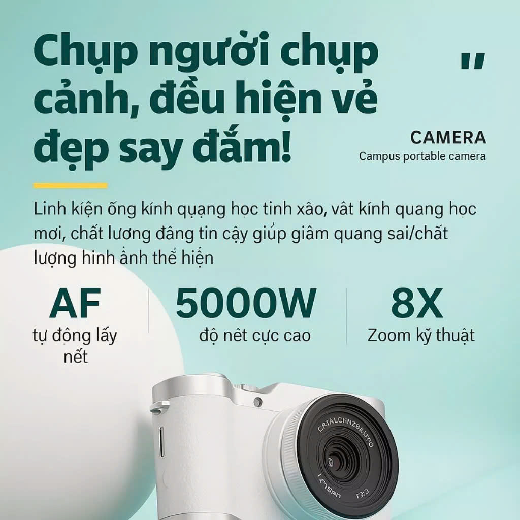 Máy Ảnh Kỹ Thuật Số Mini CCD Camera Kép – Phong Cách Retro, Siêu Nét, Kèm Thẻ 512G Chiếc máy ảnh lý tưởng cho học sinh – sinh viên và người yêu thích phong cách chụp ảnh cổ điển! Mang thiết kế nhỏ gọn, thời trang, tích hợp camera kép, cảm biến CMOS hiện đại cùng khả năng quay video 4K siêu mượt – sản phẩm không chỉ là thiết bị chụp ảnh mà còn là phụ kiện phong cách đậm chất cá nhân. Ưu điểm nổi bật: Thiết kế nhỏ gọn & trẻ trung: Kiểu dáng thẻ cầm tay phong cách retro, dễ bỏ túi – với 4 màu siêu xinh: xanh lá, trắng ngọc trai, hồng hoa anh đào và đen. Chụp ảnh siêu nét – Quay phim 4K: Cảm biến CMOS 1/1.7 inch cho ảnh độ phân giải lên đến 24MP+, màu sắc trung thực, rõ nét. Quay video chất lượng 4K cực mượt. Hiệu ứng ảnh Retro nghệ thuật: Tạo nên những bức ảnh mang sắc thái hoài niệm – khác biệt hoàn toàn so với smartphone. Tặng kèm thẻ nhớ 512GB: Lưu trữ hàng ngàn ảnh và video – không lo đầy bộ nhớ. Công dụng thực tế: