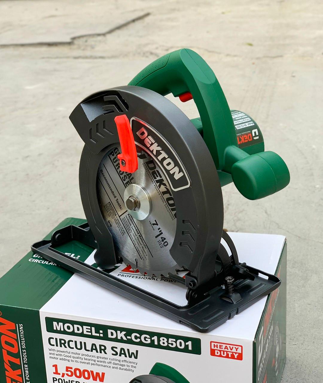 -Phụ kiện 1 lưỡi cưa gỗ 185mm, 1 cặp chổi than, 1 khóa mở