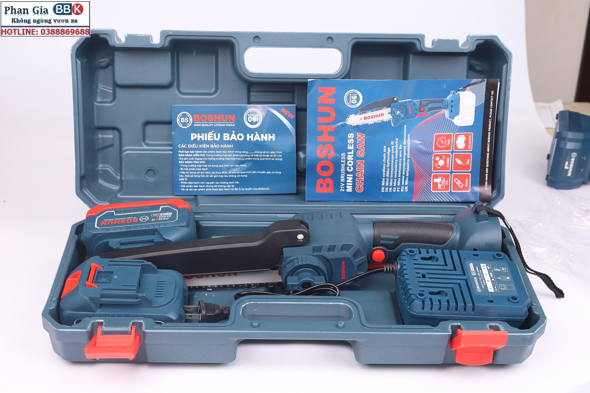 ✨Máy Cưa Xích Dùng Pin BOSHUN - Pin 21v, Lưỡi Cắt Sắc Bén, Không Chổi Than, Chân Pin Phổ Thông, Bảo Hành 6 Tháng BS-CS08